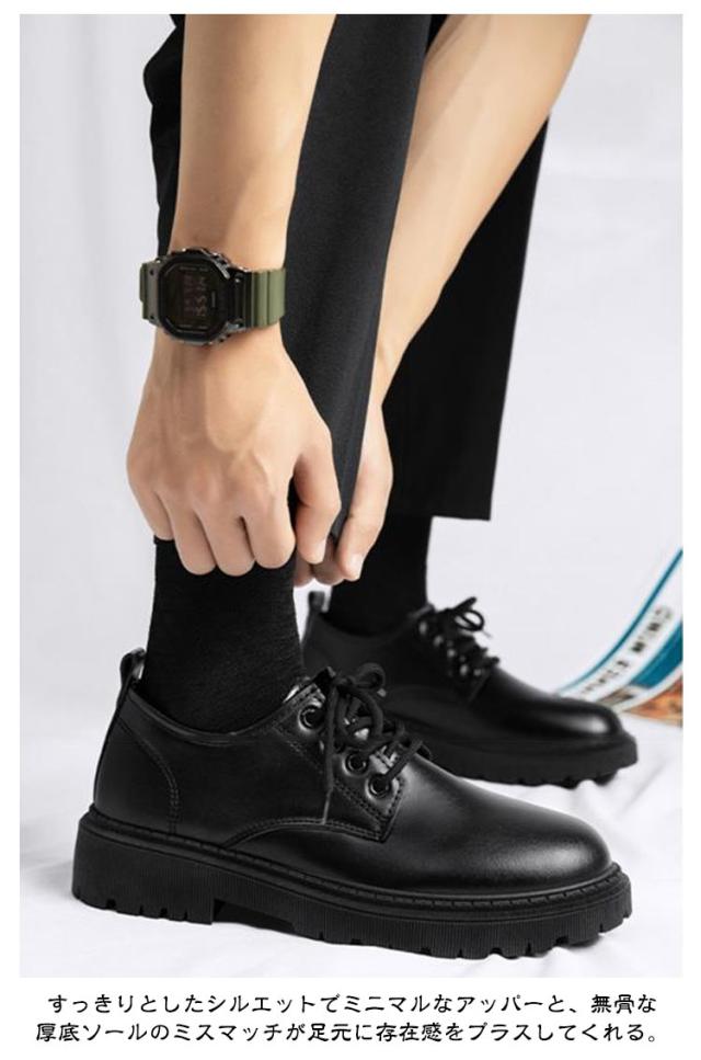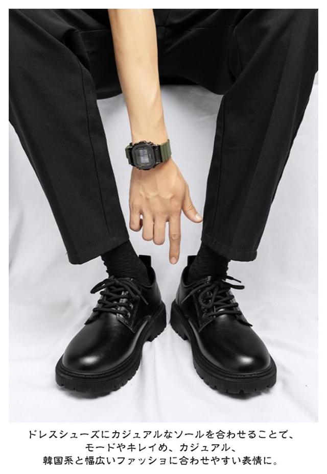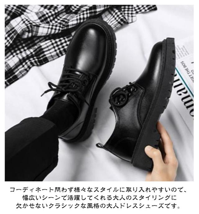 | 【6・8・10cm身長アップ】 上品さと無骨さを融合したカジュアルモードなレザーシューズ。 身長を高く見せたい人の為のさりげなく6/8/10cmヒールアップの革靴です。 ドレスシューズにカジュアルなソールを合わせることで、モードやキレイめ、カジュアル、韓国系と幅広いファッショに合わせやすい表情に。 すっきりとしたシルエットでミニマルなアッパーと、無骨な厚底ソールのミスマッチが足元に存在感をプラスしてくれる。 柔らかく足馴染みの良いPUレザー素材を使用。汚れがついても拭きやすい。 衝撃吸収のインソールと、軽量で履き心地がよく歩きやすいので、タウンユースは勿論、カジュアルシーン、旅行などにも最適! コーディネート問わず様々なスタイルに取り入れやすいので、幅広いシーンで活躍してくれる大人のスタイリングに欠かせないクラシックな風格の大人ドレスシューズです。 | |