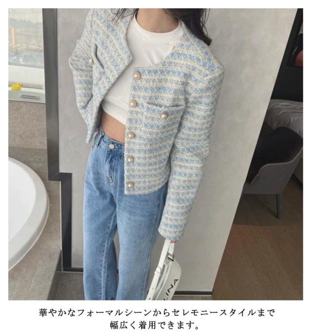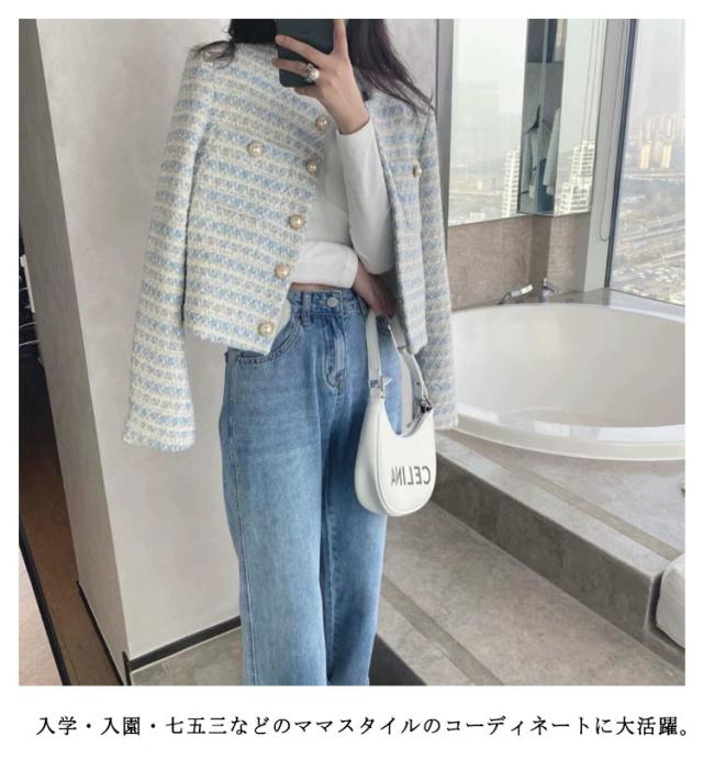 ツイード ツイード ノーカラージャケット ママスーツ レディース オフィス 春 結婚式 秋 冬 カジュアル ショート丈 ミドル丈 入学式 アウター 入園式 卒園式 卒業式 フォーマル ツイード セレモニー 母 ママ 20代 30代 40代 50代