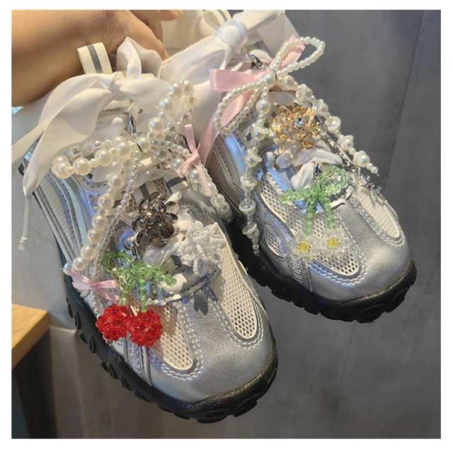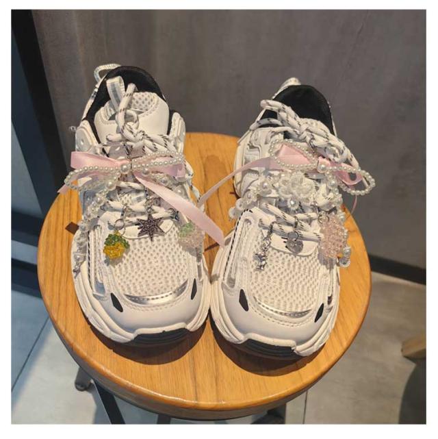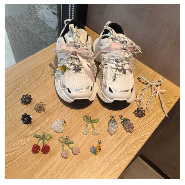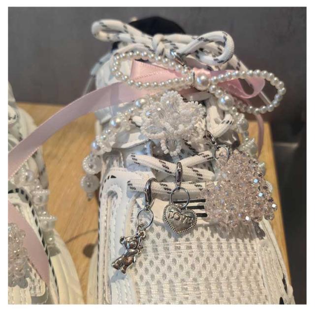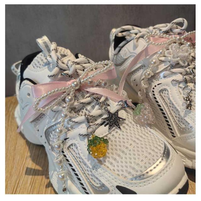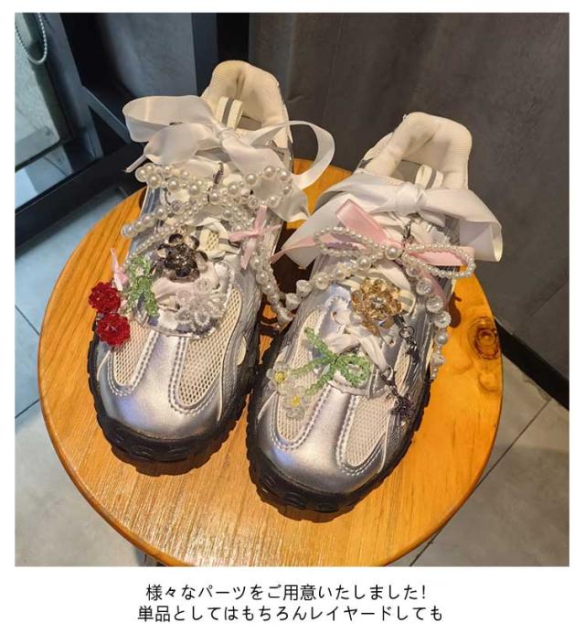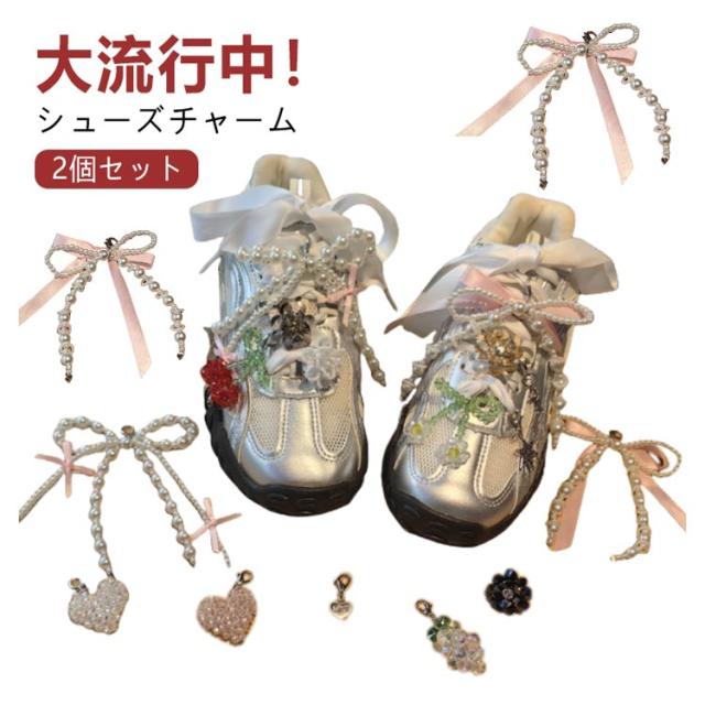 2個セット レース シューピアス 花 スニーカーデコ シューピアス シューズアクセサリー パール リボン スニーカーアクセサリー 可愛い 女性 スニーカー 靴 靴ひも シューパーツ レディース シューチャーム リボン キーリング バレエコア