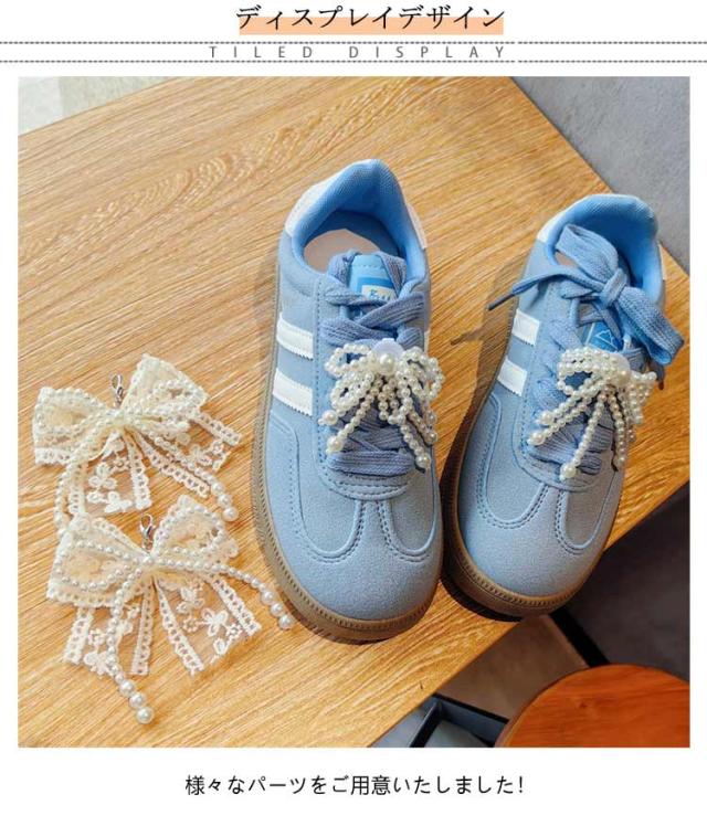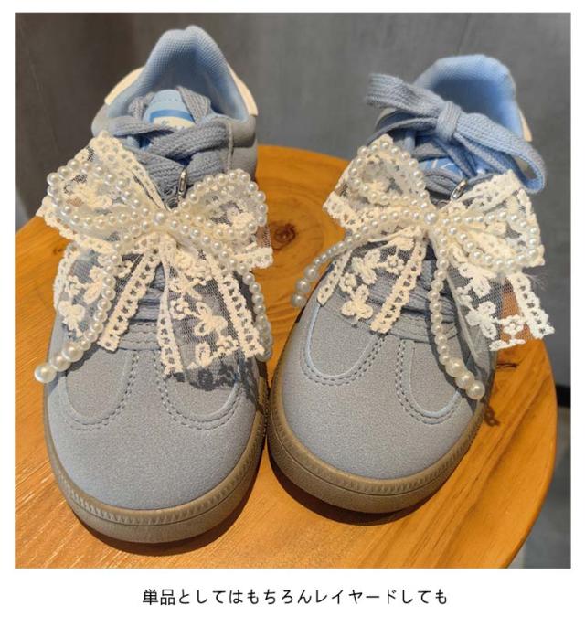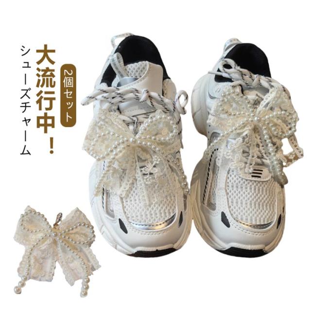 2個セット 2個セット 刺? シューピアス スニーカーデコ シューズアクセサリー 女性 レース パール リボン スニーカーアクセサリー 可愛い スニーカー 靴 靴ひも シューパーツ レディース シューチャーム リボン キーリング バレエコア