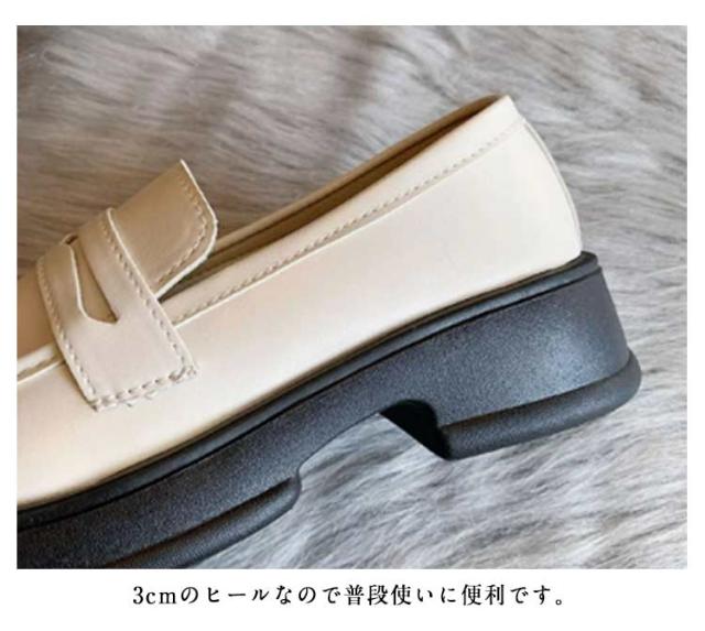 | デザインにこだわった、やわらかくて履きやすいローファーです。 3cmのヒールなので普段使いに便利です。 シンプルなデザインは、服を選ばずデイリーに。 | |