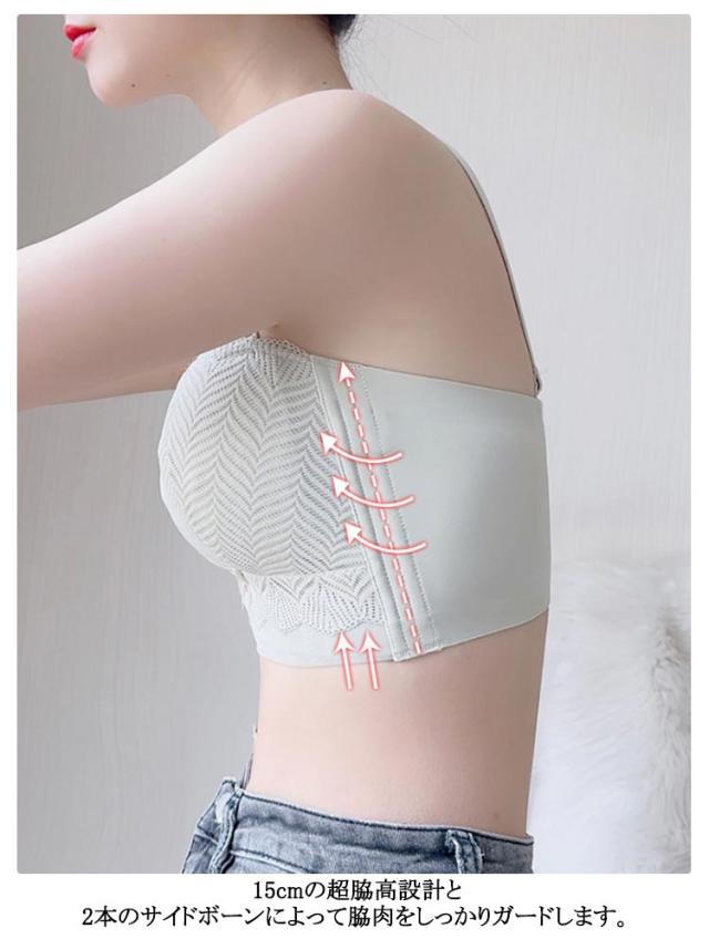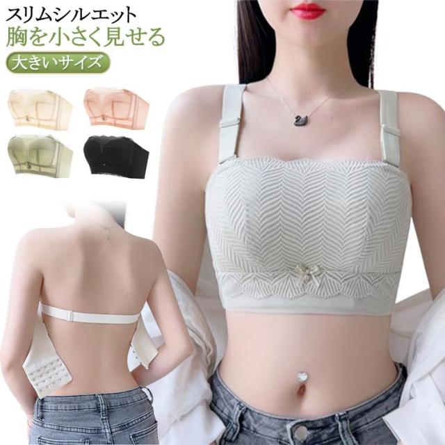 ノンワイヤー 肩紐なし レース ブラトップ チューブトップブラ 大きいサイズ ストラップレスブラ ブラジャー 胸を小さく見せるブラ チューブトップ 補正ブラ 脇高 脇肉 ハミ肉 着痩せブラ タンクトップ 胸元スッキリ 背中 胸を小さく見せるブラ 薄型 胸をおさえるブラ
