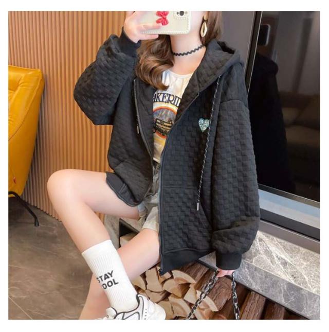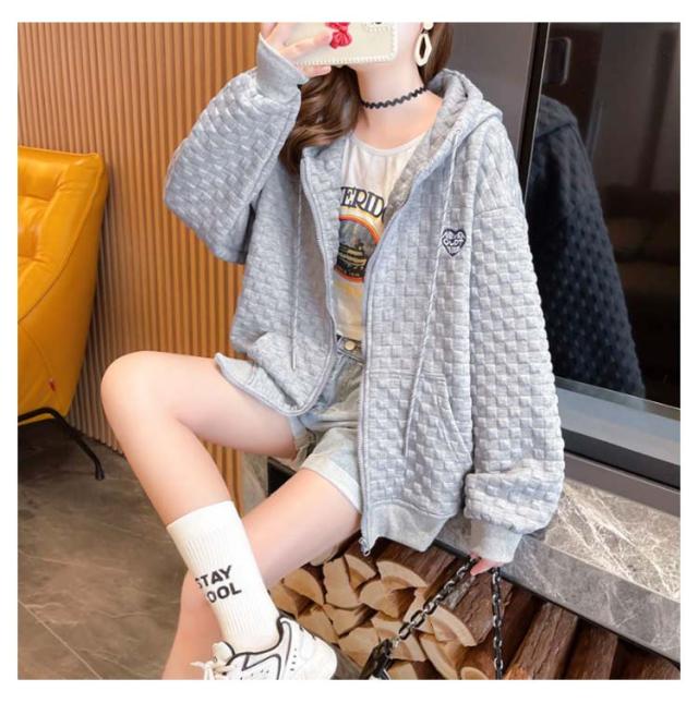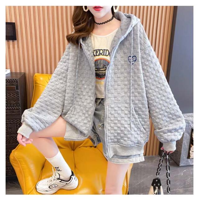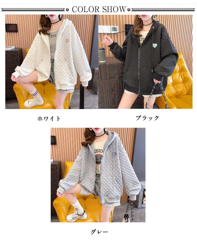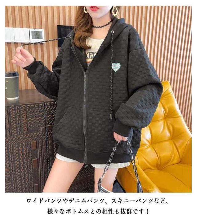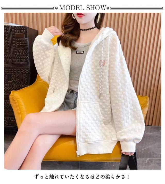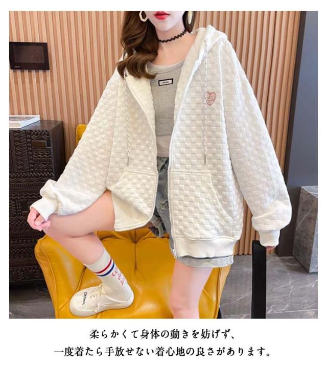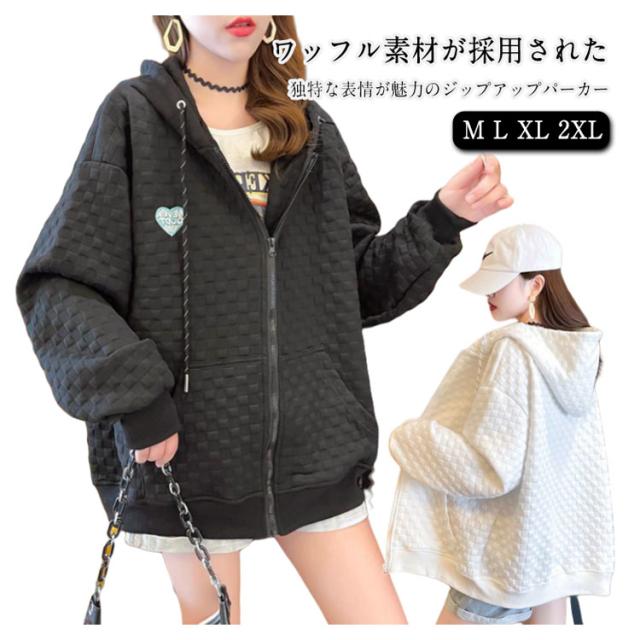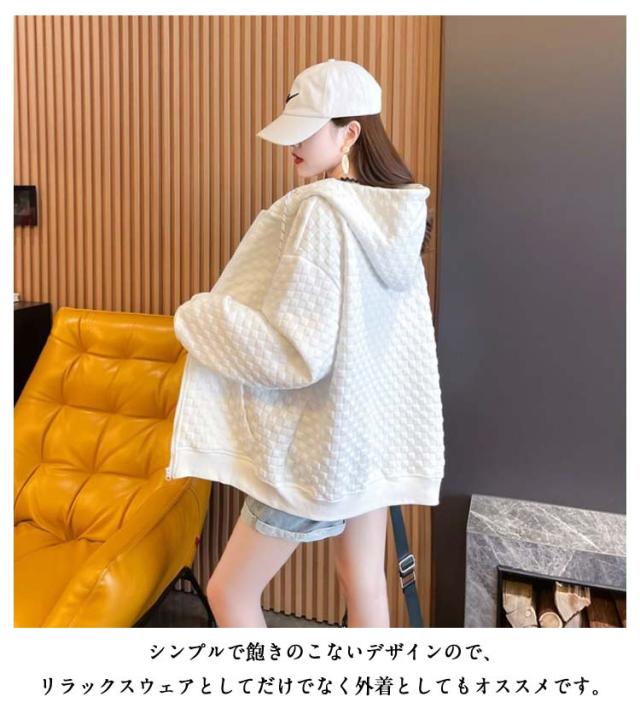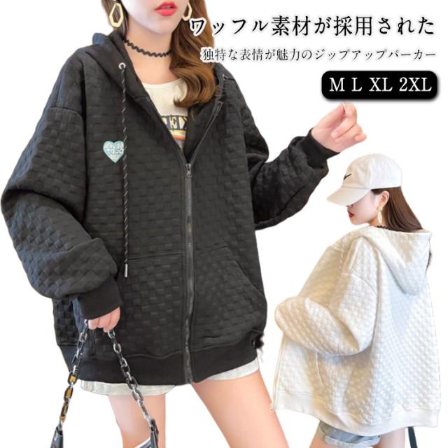 フード付き レディース ワッフル トップス ワッフル ジップアップパーカー 春秋 ゆったり ジップアップパーカー オーバーサイズ 前開き 羽織り 着?せ 無地 シンプル
