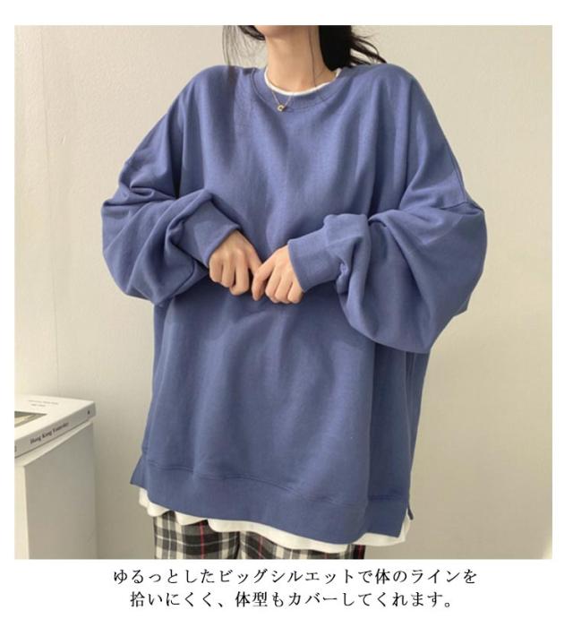 | 全4色!ビッグシルエットの重ね着風トレーナーです。 1枚でコーデが決まる、裾と袖から覗くシャツを重ね着しているようなフェイクレイヤードデザインがポイントです。 ゆるっとしたビッグシルエットで体のラインを拾いにくく、体型もカバーしてくれます。 柔らかくて軽く暖かいスウェット素材で、春、秋、冬と長く愛用できるアイテムです。 普段のお出掛けはもちろん、ルームウェア等にもオススメです。 | |