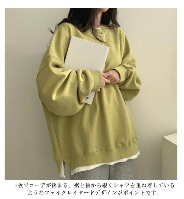 レディース トレーナー 長袖 トレーナー 重ね着風 スウェット ルームウェア プルオーバー レイヤード風 トレーナー トップス ビッグシルエット 体型カバー 可愛い 薄手 普段着 ゆったり 春 秋