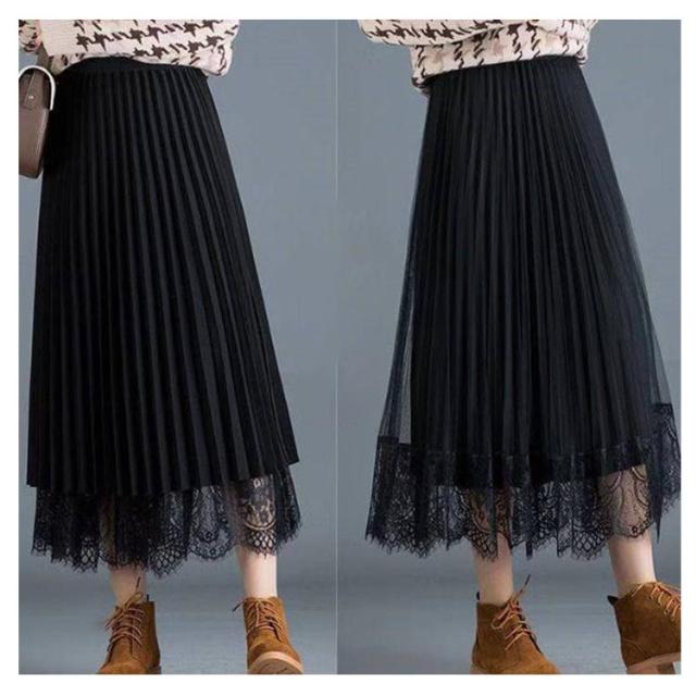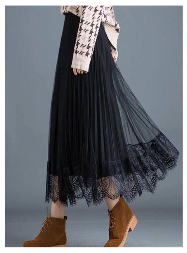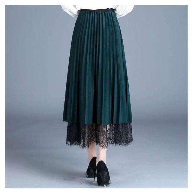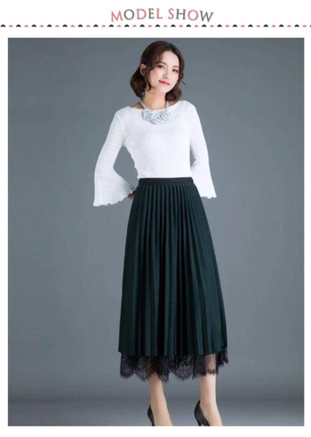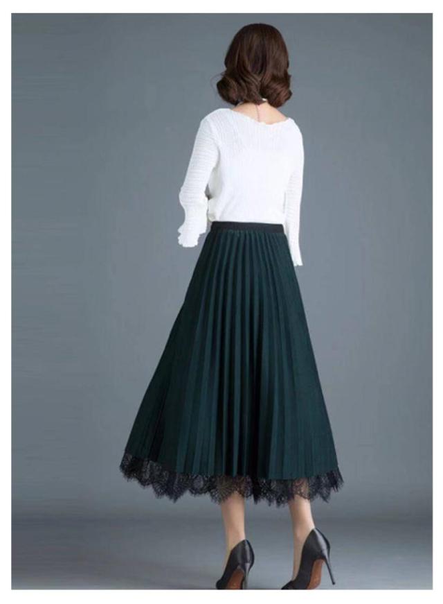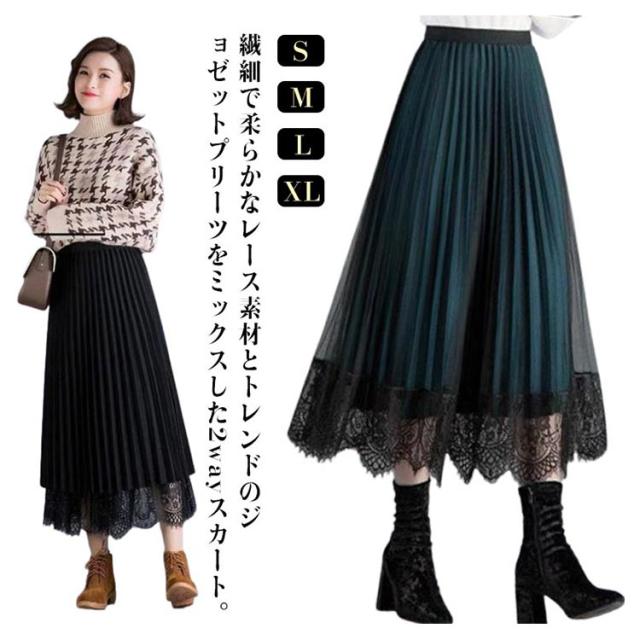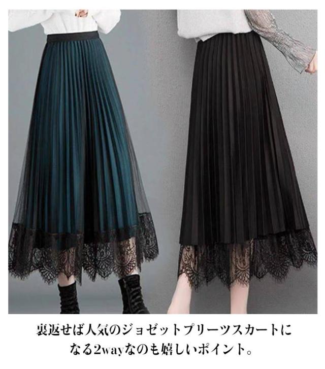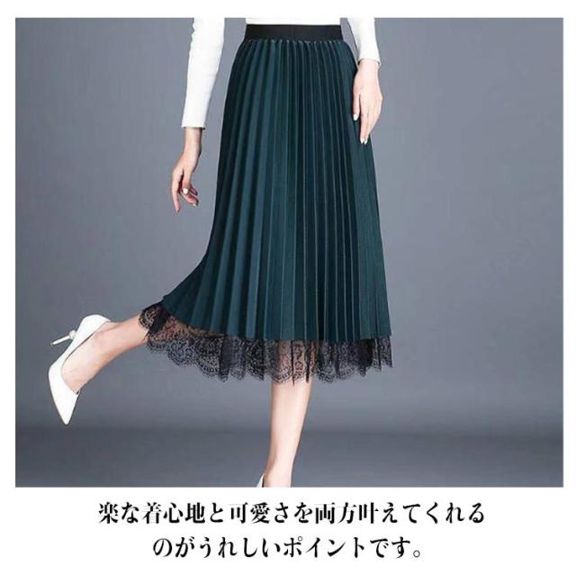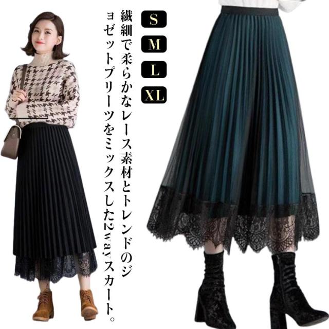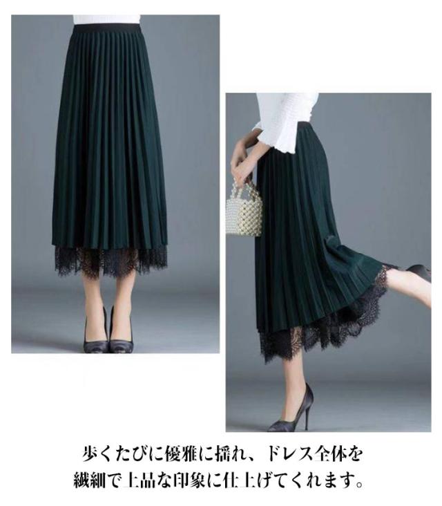 スカート プリーツスカート レーススカート Aライン スカート レース フレア レディース ミモレ丈 無地 リバーシブル オフィス 可愛い 裏地付き 春 夏 秋 ゴムウエスト 大人可愛い きれいめ 膝下 体型カバー おしゃれ