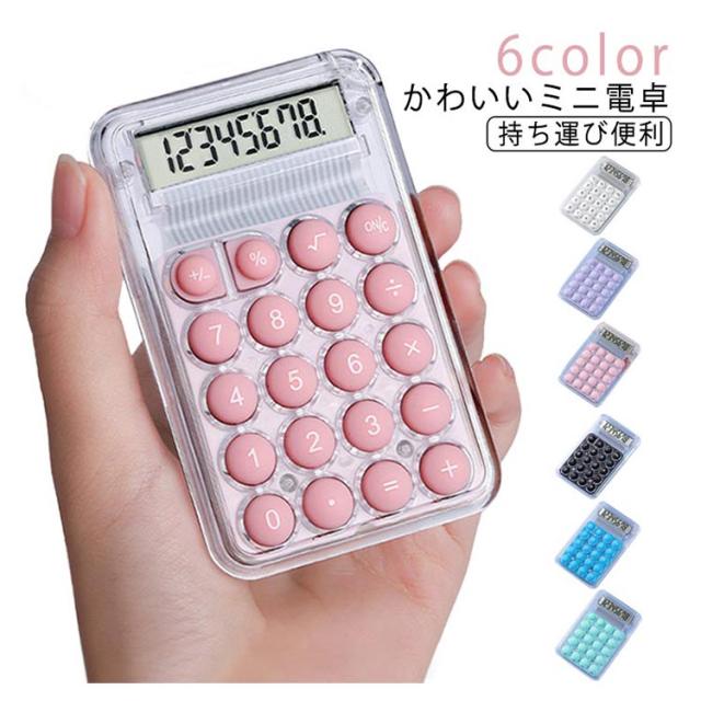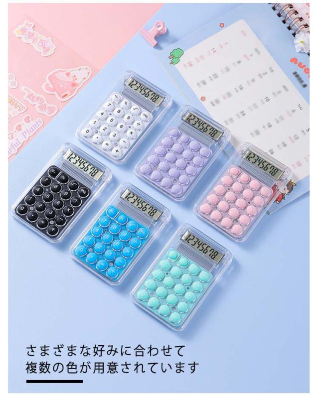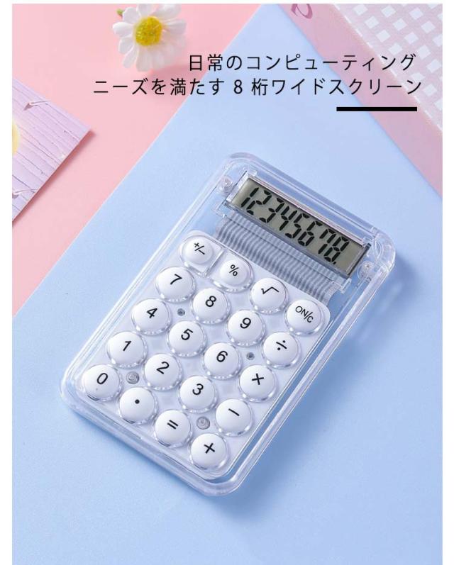 おしゃれ ミニ電卓 丸ボタン 電卓 計算機 電池付き ミニ電卓 大きい かわいい 8桁 計算機 滑り止め 持ち運び便利 簿記 日常と基本的なオフィス用 見やすい 透明色 税計算 税込 税抜 オフィス用品 事務用品 デスク用品