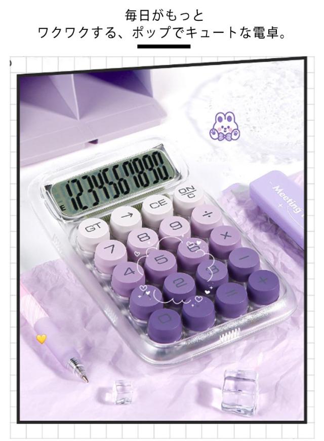 | 【持ち運び】【12桁 】【卓上電卓】 毎日がもっとワクワクする、ポップでキュートな電卓。 親しみやすいラウンドフォルムと丸みを持たせたサイドの形状で、手にした際に持ちやすく。 かわいく丸いキーボタンを採用し、カジュアルなデザインとの統一感を演出。 そのままデスクに置いておいてもインテリアになるおしゃれなデザインです。 | |