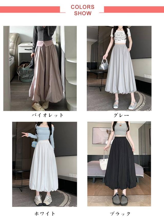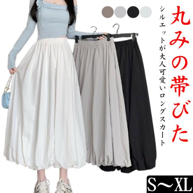 薄手 バルーンスカート スカート ロングスカート マキシ丈 バルーンスカート Aライン 大人 バルーン ロング 春夏 ロング丈スカート コクーンスカート 体型カバー ハイウェスト ふんわり 着痩せ 可愛い マキシスカート 通勤 無地 ギャザー入り