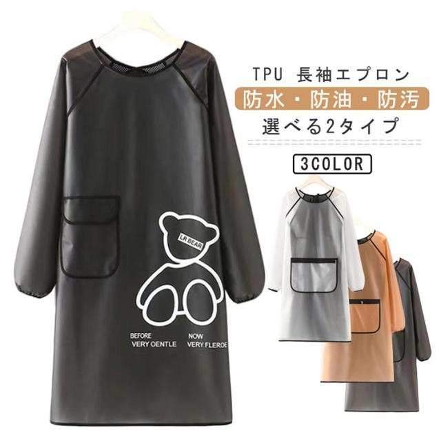 | TPU 長袖エプロン 防水・防油・防汚 選べる2タイプ 汚れに強いTPU素材を使用。汚れてもサッとふき取り&水洗いできれいに。 袖口は水仕事にも便利なゴム仕様。 フロントには深さのある幅広ポケット付き。スマートフォンはもちろん、メモ帳や伝票もすっぽり入ります。 キッチン、お風呂掃除などの水仕事、ガーデニングや洗車etcにもグッド! 仕事着として、調理士・保育士・介護士・看護師の方にも。 | |