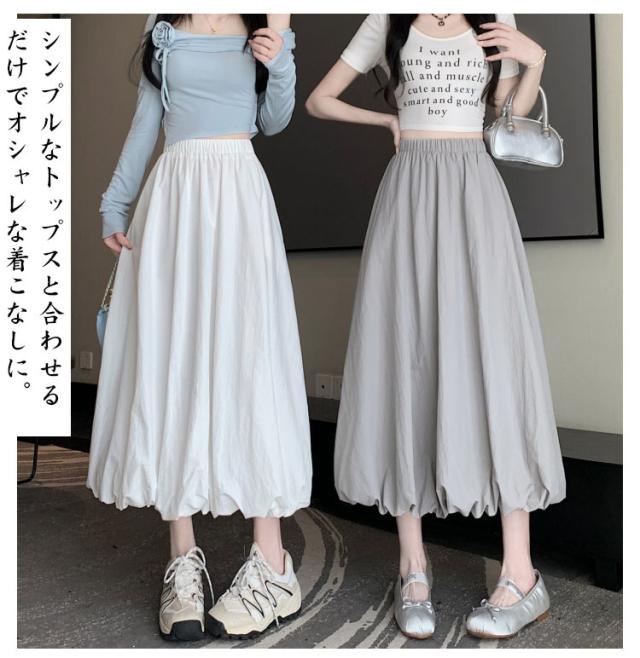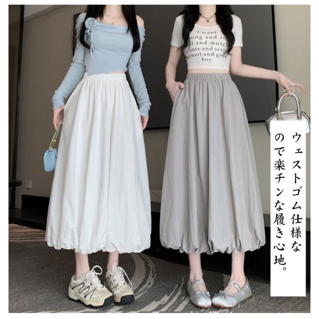 ロング マキシ丈 バルーンスカート 体型カバー ロング丈スカート スカート 無地 ふんわり バルーン スカート Aライン マキシスカート コクーンスカート 春夏 ハイウェスト 大人 薄手 可愛い 着痩せ 通勤 バルーンスカート ギャザー入り