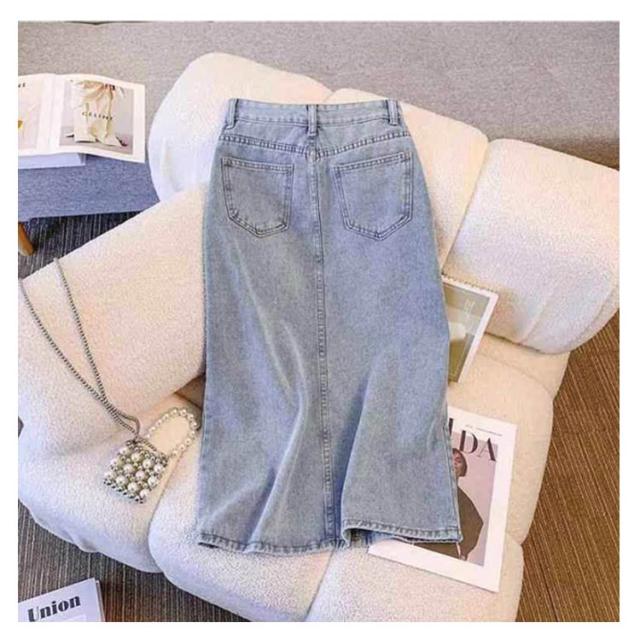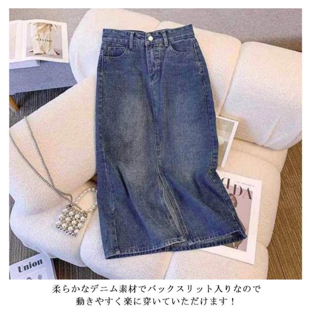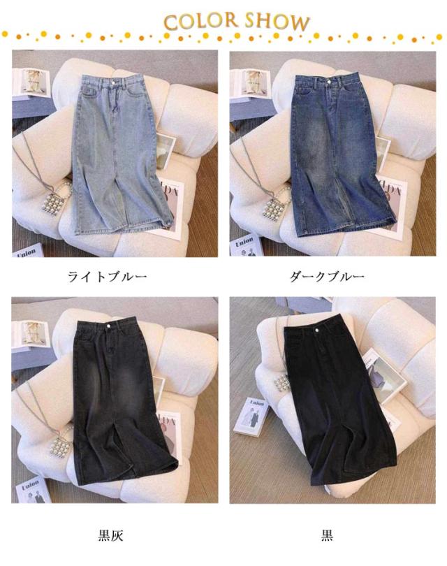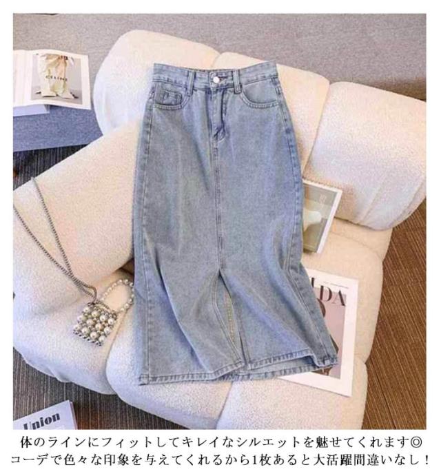 韓国風 デニムスカート ハイウエストデニムスカート 秋 柔らかい ロング デニム スリット入り ロングスカート 春 夏 レディース ハイウエストデニムスカート カジュアル シンプル ボトムス ロングスカート 美脚 着?せ 大きいサイズ 体型カバー 大人女性
