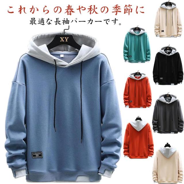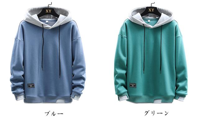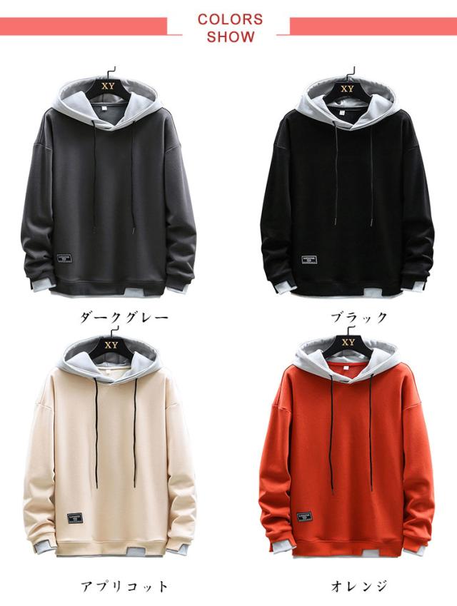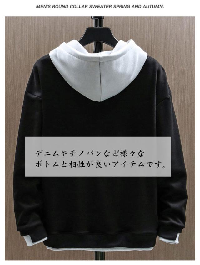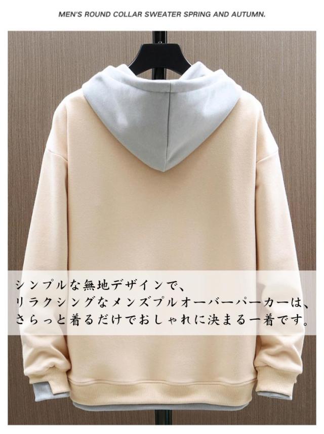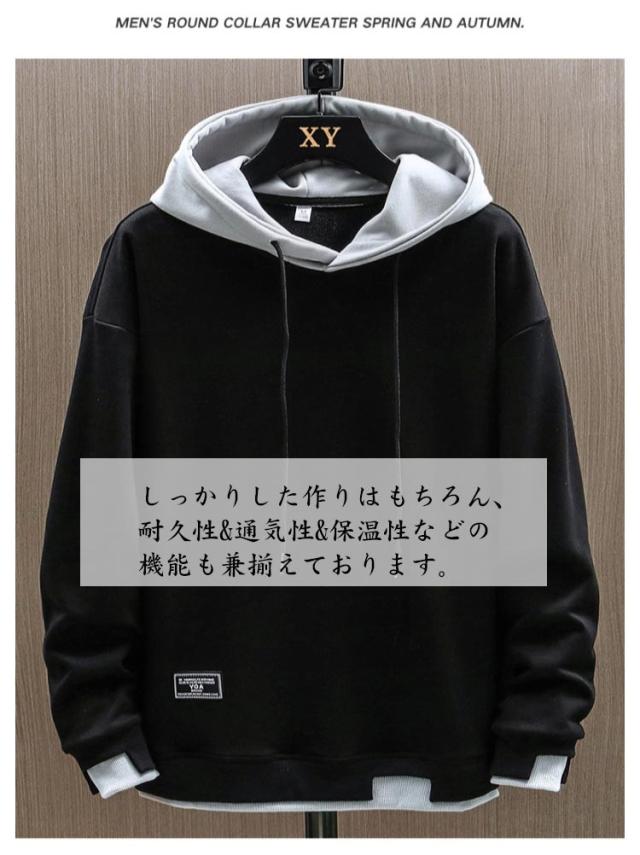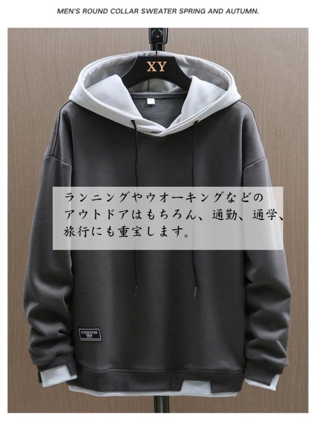 シンプル トレーナー パーカー シンプル フード付き トップス メンズ 春秋冬 パーカー スウェット プルオーバーパーカー 長袖 カジュアル 大きめ 重ね着風 おしゃれ 柔らかい 部屋着 ルームウェア スポーツウェア 無地 大きいサイズ