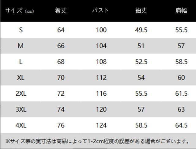 | サイズ | S M L XL 2XL 3XL 4XL |