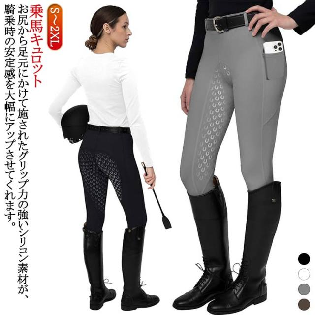 | 乗馬キュロット S〜2XL お尻から足元にかけて施されたグリップ力の強いシリコン素材が、騎乗時の安定感を大幅にアップさせてくれます 初心者の方に特におすすめのキュロットです 足首部は脱ぎ履きしやすいスパッツ素材となっています | |