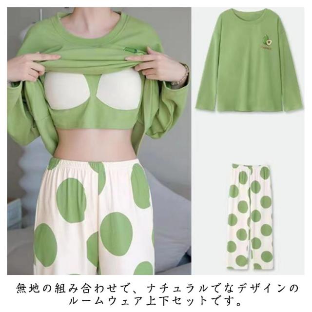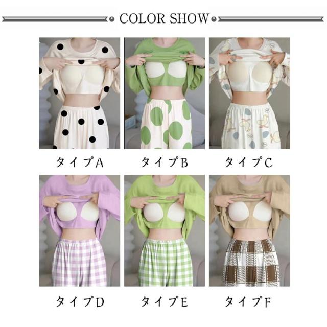 パジャマ ロングパンツ ズボン2点セット 長袖 ブラ付き 上下セット 寝間着 パジャマ 女性 体型カバー 部屋着 パジャマ レディース 寝巻 ロンT ナイトウエア 部屋着 入院 産後 パジャマ 春夏秋 カップ 胸カップ 大きいサイズ M L XL 2XL 3XL 4XL
