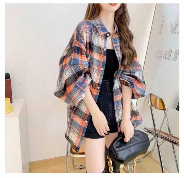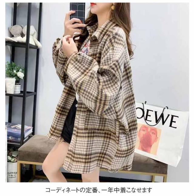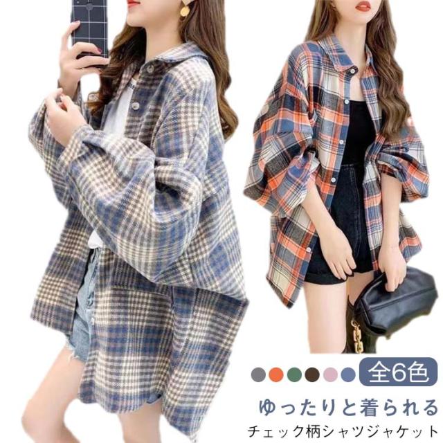 シャツ ライトアウター シャツジャケット 体型カバー レディース チェック柄 ネルシャツ オーバーサイズ ゆったり トレロ ドロップスリーブ カジュアルシャツ 春 20代 30代 40代