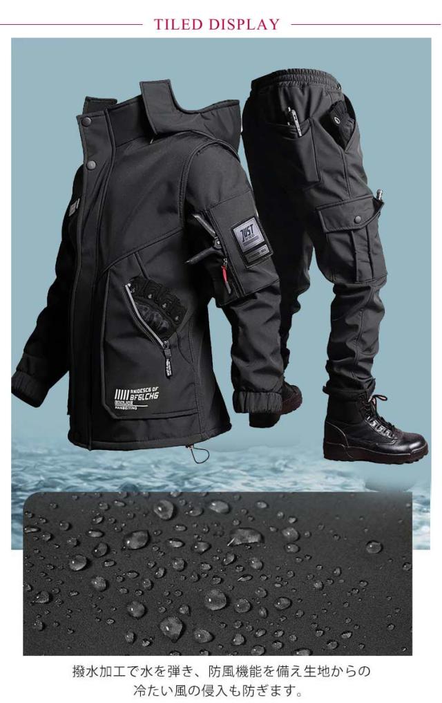 ウインドブレーカー 軽量 セットアップ 防寒 裏起毛 裏ボア 防寒着 厚手 ズボン 防風 冬 春 撥水 防水 作業服 ジャケット 秋 ミリタリー ワークパンツ 作業ズボン 防寒 メンズ マウンテンパーカー ジョガーパンツ 大きいサイズ 黒 カーキ