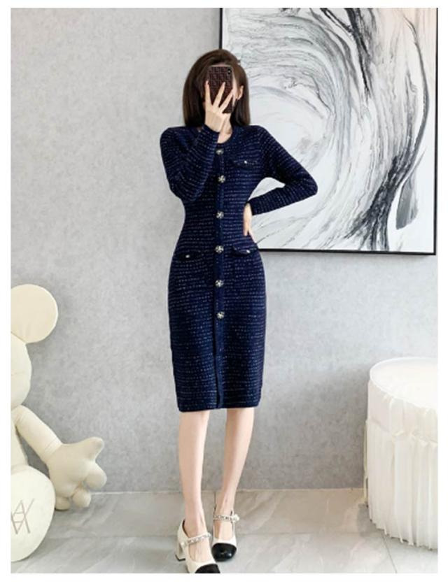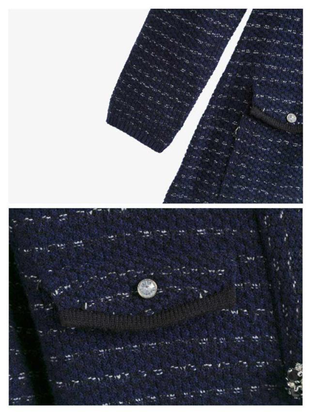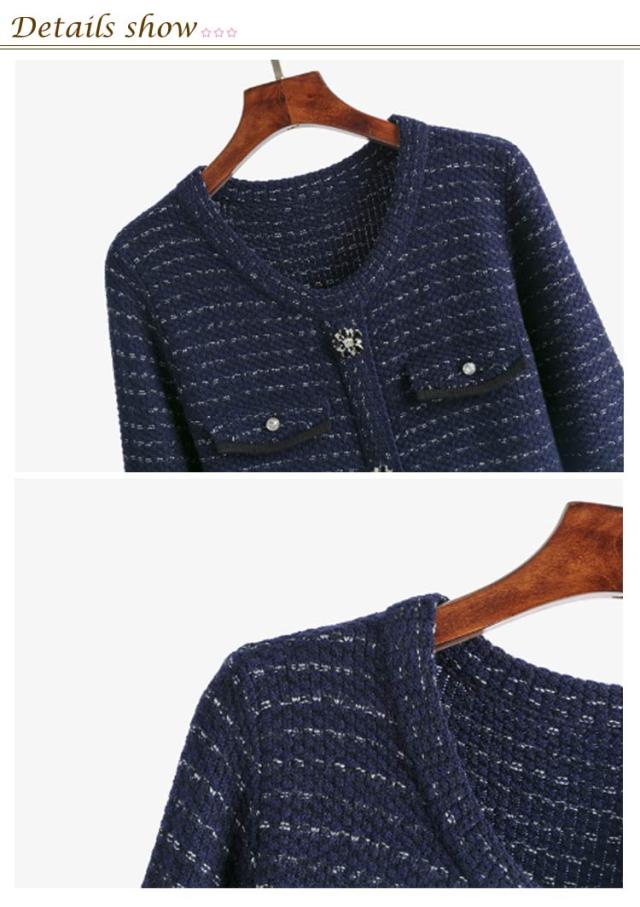 | 氷のように瑞々しさが溢れるクリアなビジューと、しっとり艶めくブラックのストーンによって作られたフラワーボタンが印象的なニットワンピース 光の反射によってビジューがキラキラと輝き、着用した日は思い出に残るひとときへ。背面はシンプルな無装飾になっており、前後で異なる雰囲気を持っています。 ふくらはぎから足元にかけての細見え効果が期待出来るミモレ丈に加え、スレンダーボディに見せられるIラインシルエット。首回りは鎖骨まで覆えるので華やかでもセクシーになり過ぎず、胸元にも安心感。肌見せを抑えながらも本格的にドレスアップが出来るワンピースです。 上下4箇所のポケット付きでフラップにアクセントを施しており、ドレッシーな雰囲気を崩さないミニマルなサイズ感に仕上げています。 小さめのバッグやヒール付きシューズといった女性らしい小物使いが合い、ブーツと共にコーディネートすれば更に季節感がUPするのでおすすめです。 | |