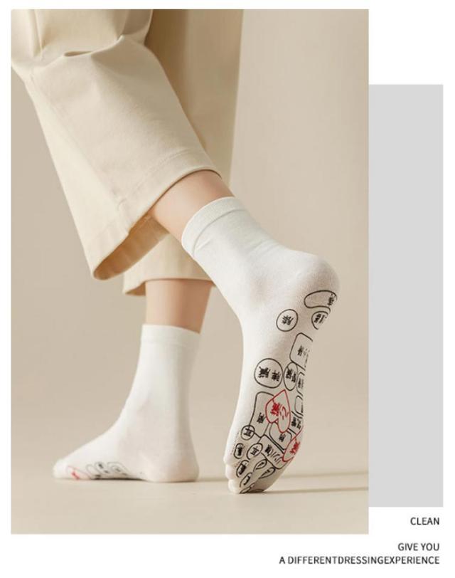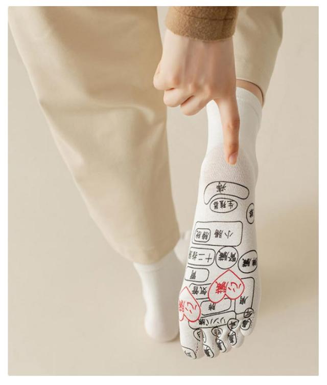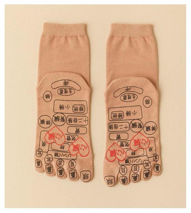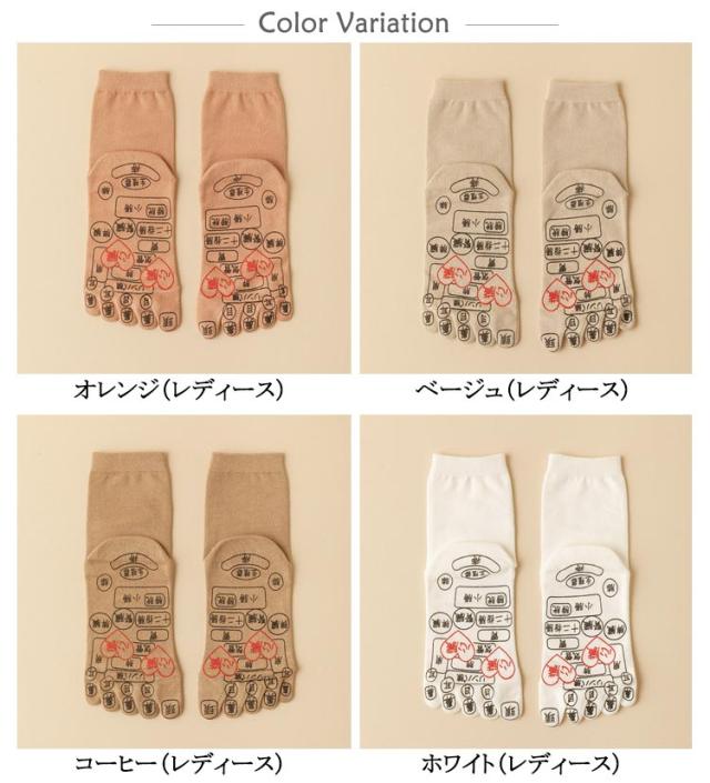 | 足ツボ押しソックス。日常の忙しさやストレスで疲れた足に、心地よいリフレッシュを提供する新しい健康ソリューション、足ツボ押しソックスです。 足裏には足ツボ箇所が細かく表示されており、これがまるで足裏にマッサージ師がそばにいるような感覚を生み出します。 足ツボの刺激は、日々の活動で酷使された足をやさしくほぐし、疲労を癒します。 ツボの位置は足裏に描かれているため、手軽に自分でアプローチでき、いつでもどこでも気軽にご利用いただけます。 靴下としての機能も兼ね備えており、通常の生活や仕事中でも着用可能。いつでも足元から心地よいケアを受けられます。 フリーサイズなのでどなたでも快適な履き心地を提供します。 | |