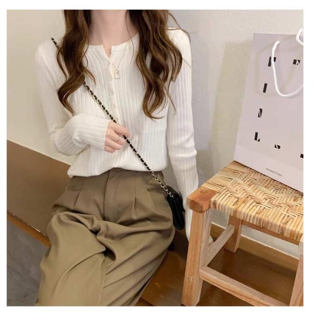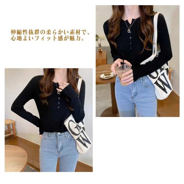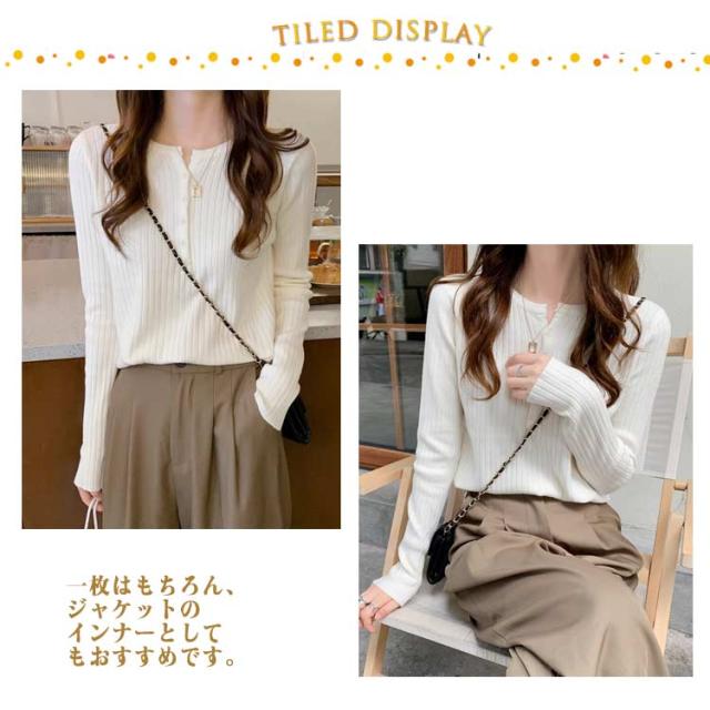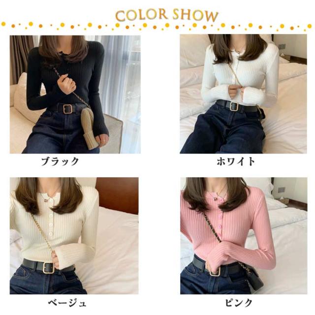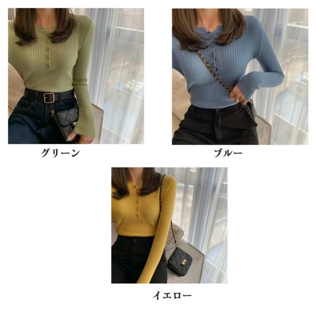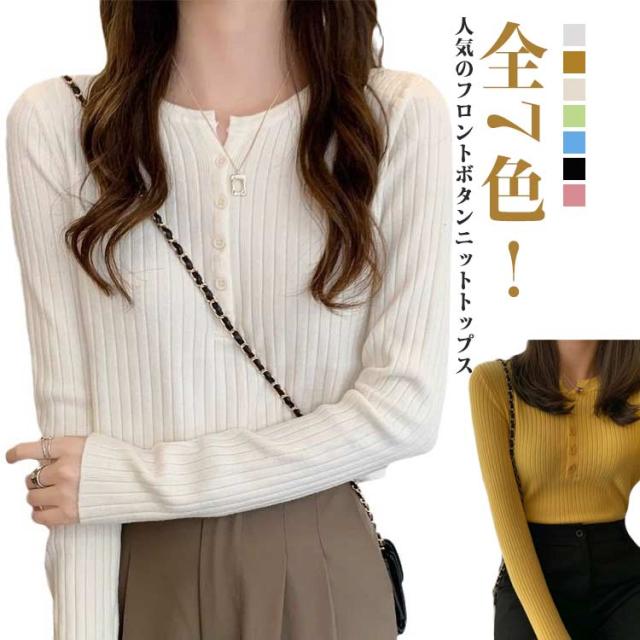 | 全7色!人気のフロントボタンニットトップス! 伸縮性抜群の柔らかい素材で、心地よいフィット感が魅力。 一枚はもちろん、ジャケットのインナーとしてもおすすめです。 | |
