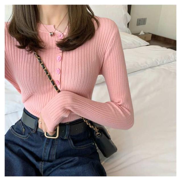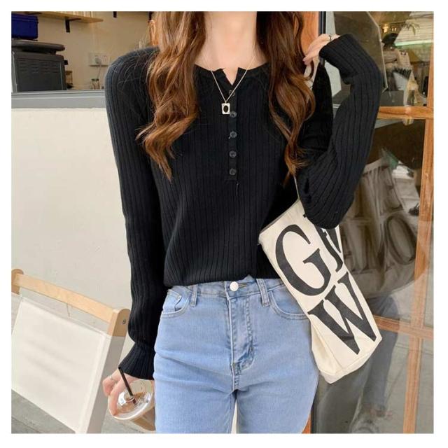 秋 レディース リブニット ニット 長袖 ニットプルオーバー セーター 大きいサイズ 春 ニット フロントボタン セーター インナー 冬 ストレッチ レイヤード オフィスカジュアル 通勤 オフィス OL