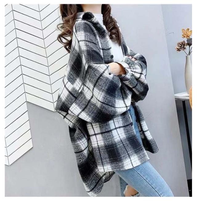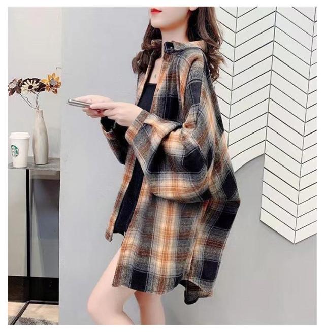 ネルシャツ 秋 微起毛 ネルチェックシャツ フリースネルシャツ チェックシャツ レディース シャツ ネルシャツ 大きいサイズ 大きめサイズ ビックシャツ ドロップショルダー ゆったり 春 冬 アウター 厚手 長袖 羽織り