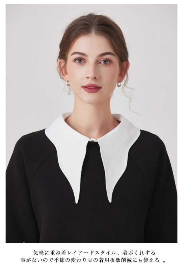 レディース フェイクカラー ビックカラー 角襟 重ね着風 つけ襟 ブラウス シャツ つけえり シャツ風 つけえり トップス 付け襟 つけ衿 レイヤード インナー 無地 スーツ シャツ付け襟 大人 白 可愛い 着回し かわいい