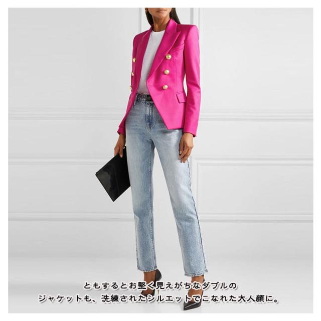 | カジュアルなシーンにはもちろん、オケージョンなどのきちんと感のある装いにも幅広くマッチするテーラードジャケット。 ともするとお堅く見えがちなダブルのジャケットも、洗練されたシルエットでこなれた大人顔に。 パンツスタイル以外にも、ワンピースやスカートと合わせると、様々な雰囲気のコーディネートが楽しめます。 きれいめのスラックスやナロースカートを合わせて、オケージョンや、オフィスカジュアルにも着用可能。 カットソーやTシャツにデニムなどを合わせると、カジュアルなデイリースタイルにも◎ 取り入れるだけで、コーディネートに華を添えてくれるおすすめのアウターです。 | |