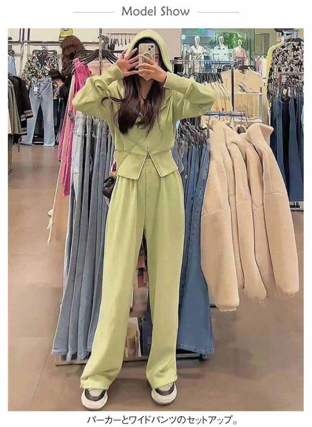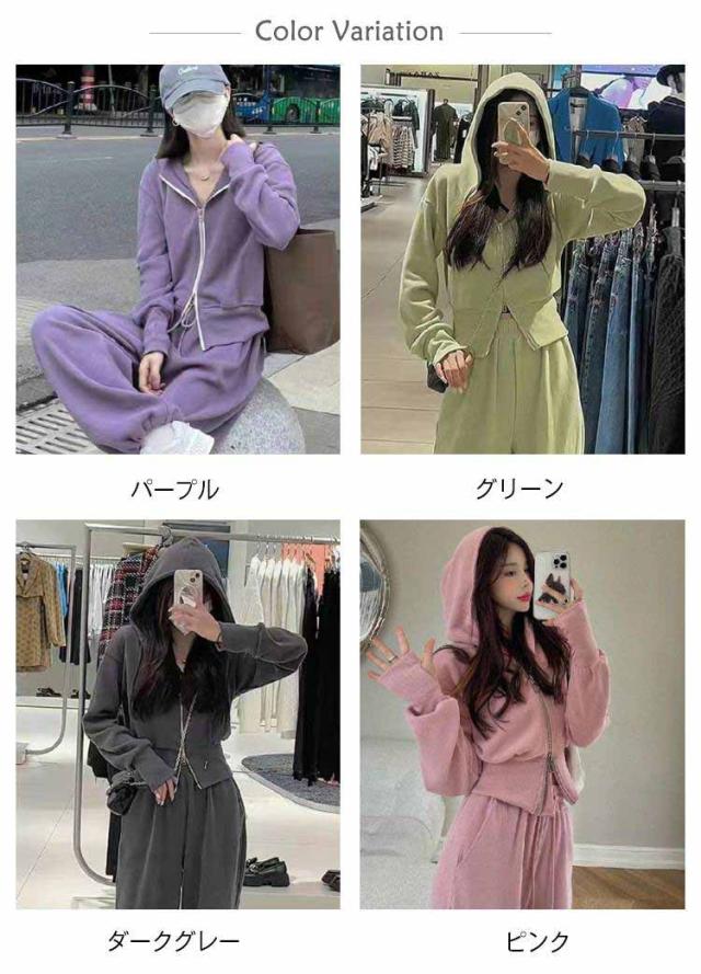 | パーカーとワイドパンツのセットアップ。 着心地もよく肌にもやさしくて、長期間着ても不快感もなし。 ランニングウェア 、ヨガウェア、通勤、通学、カジュアルにも、デイリーコーディにも主役に間違いなしです。 | |