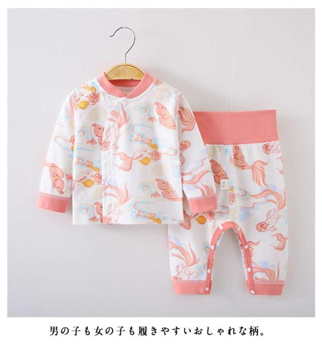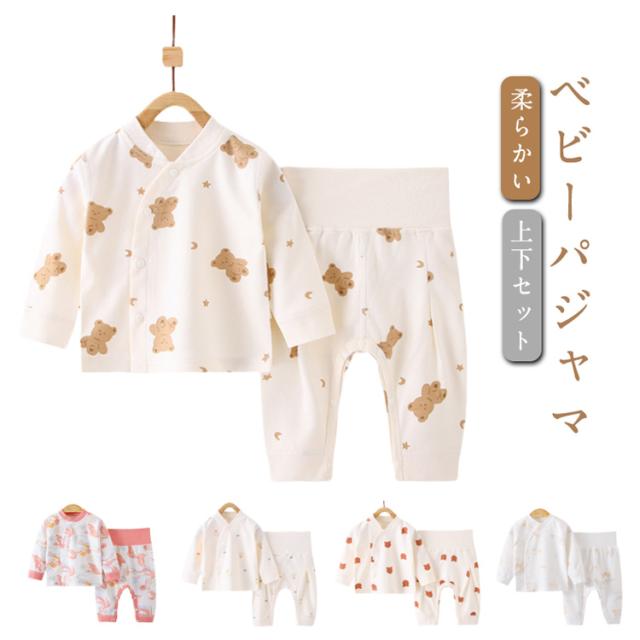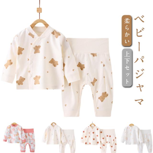 春秋 パジャマ 新生児 ベビーパジャマ ベビーパジャマ ベビールームウェア 腹巻付き ベビー 前開き 春秋 赤ちゃん パジャマ 寝間着 綿 柔らかい 女の子 男の子 ルームウェア ベビーパジャマ 2点セット お昼寝 総柄
