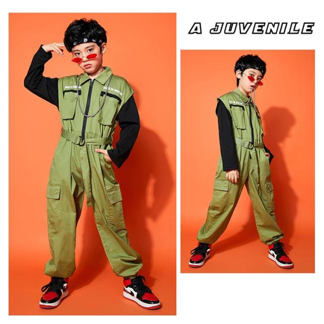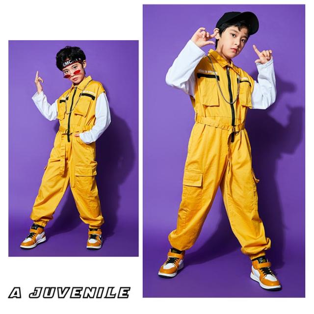 衣装 オールインワン キッズ 女の子 つなぎ服 子供 ジャズ 男の子 ダンス衣装 ヒップホップ セットアップ 黄色 ダンス キッズ ダンスウェア カーゴパンツ ミリタリー つなぎ服 カバーオール ベルト付き ストリート ユニセックス かっこいい イエロー