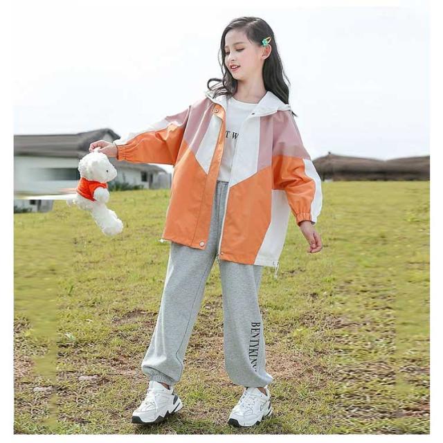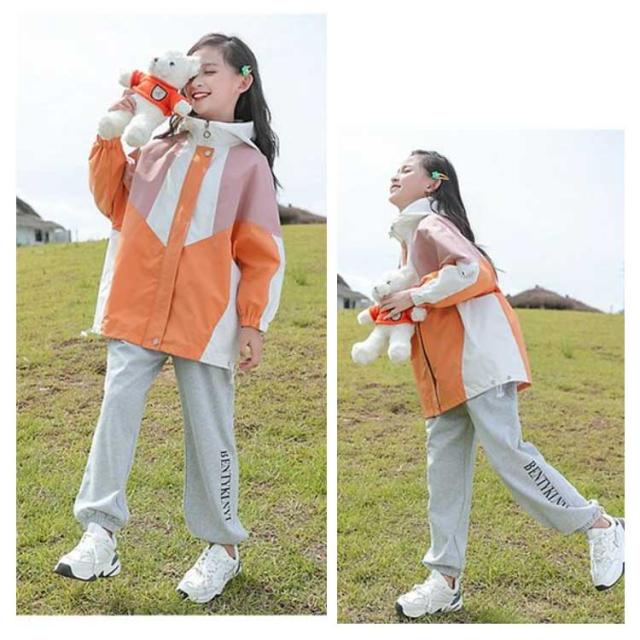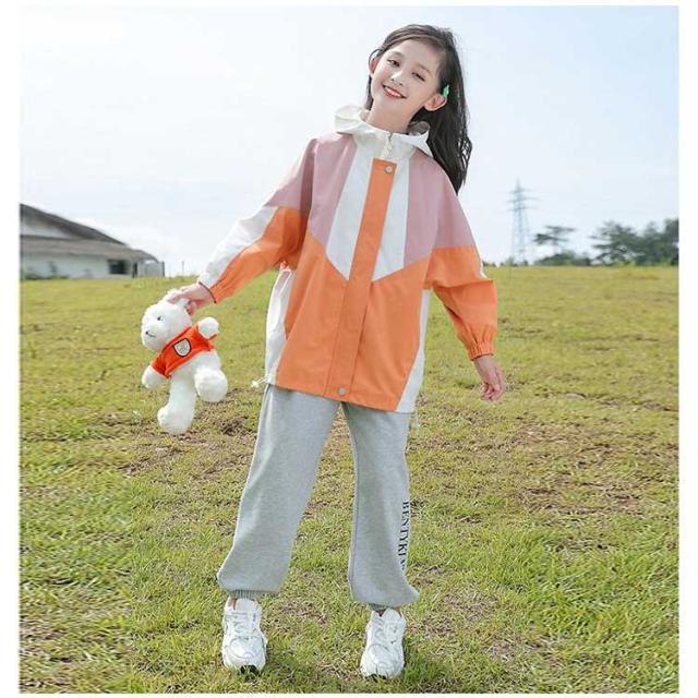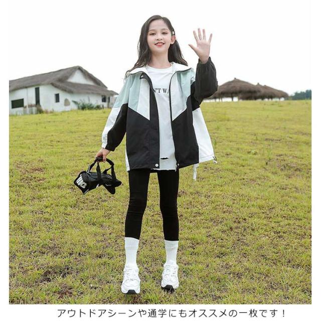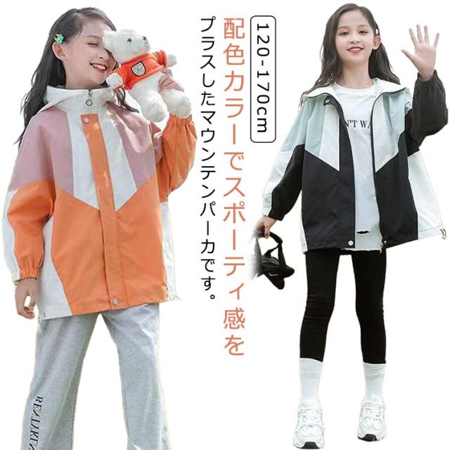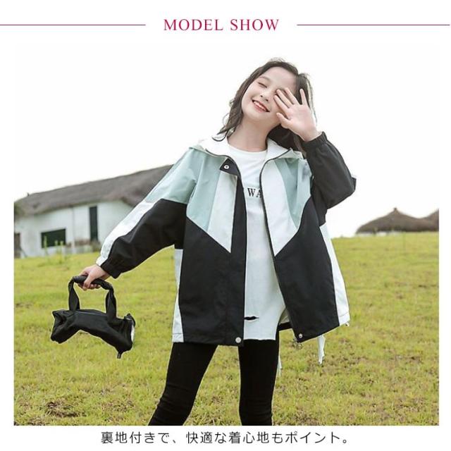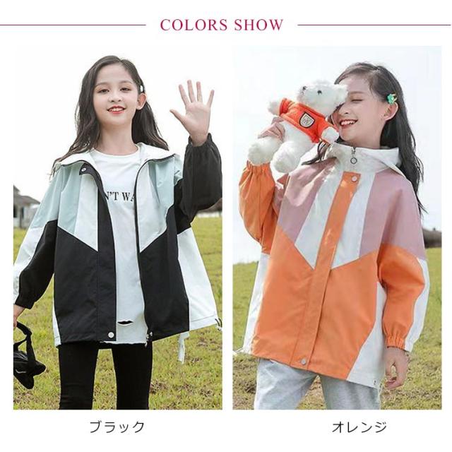 女の子 配色 マウンテンパーカー 春物 春 ブルゾン フード付き ジュニア 裏地付き キッズ アウター 上着 子供服 春 小学生 韓国 撥水 110 120 130 コート 150 160 防風 ジャケット 速乾 無地 ウインドブレーカー ライトアウター かわいい