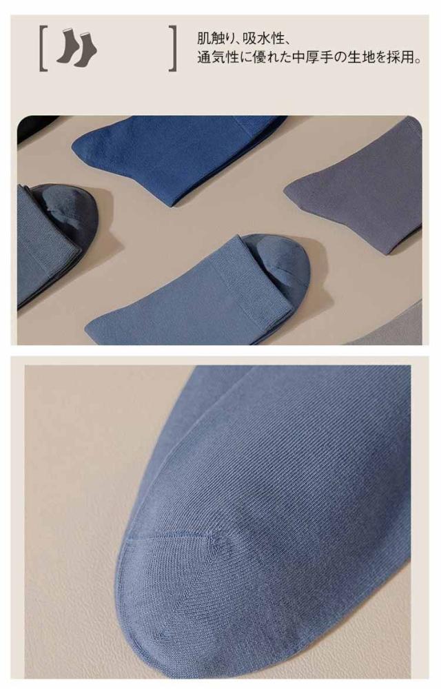 | ビジネスシーンで使いやすい無地靴下。 肌触り、吸水性、通気性に優れた中厚手の生地を採用。 厚手すぎず薄手すぎないため、春夏秋冬どの季節でも快適に履くことができます。 シンプルな見た目が冠婚葬祭や普段使いにもマッチし、 どんな場面でも違和感なくご使用いただけます。 オフィススタイルやフォーマルなシーンはもちろん、 カジュアルスタイルにも合わせやすい万能なソックスです。 | |