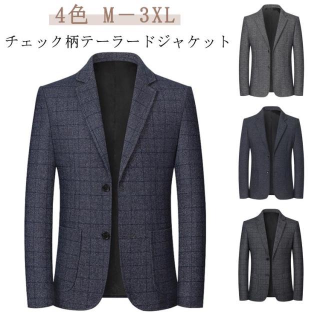 テーラードジャケット テーラード ジャケット メンズ チェック柄 カジュアル スーツ ビジネスジャケット ビジネス ブレザー 大きサイズ 春 秋 冬 40 50代 紳士服