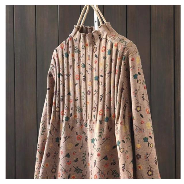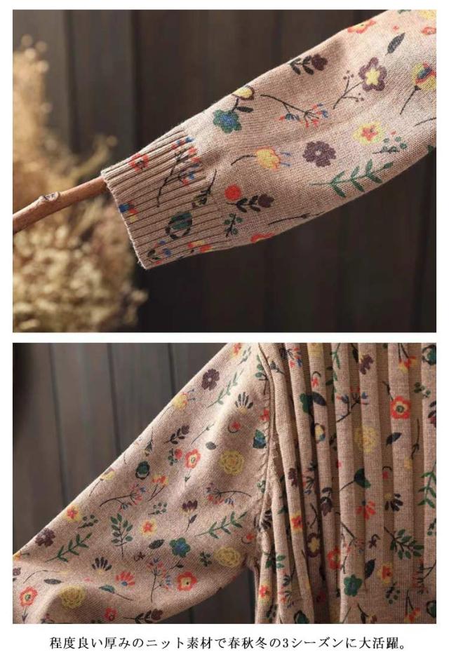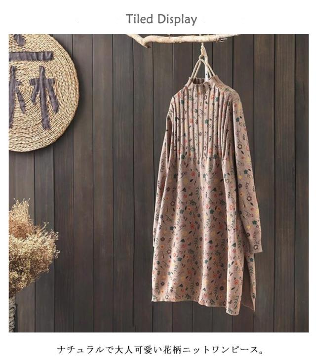 | ナチュラルで大人可愛い花柄ニットワンピース。 高すぎないハイネックデザインでマフラーいらず、首元まで暖かい。 サイドに深めのスリット入り動きやすい。 程度良い厚みのニット素材で春秋冬の3シーズンに大活躍。 | |