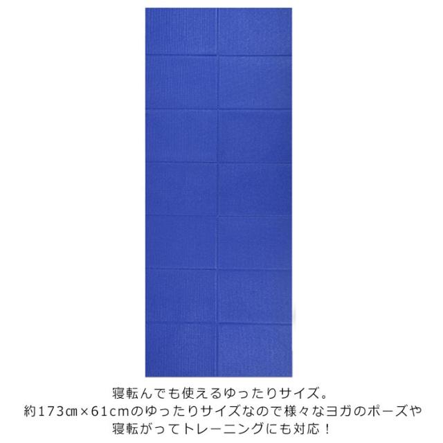 | 収納袋付き折りたたみ式ヨガマット。【厚さ6mm&8mm】 ヨガ教室での使用はもちろん!自宅でのヨガやピラティスストレッチなど様々なトレーニングにも使えます。 丸めたりコンパクトに折りたためて持ち運び&収納に便利! 優しい弾力のTPEを採用!クッション性がありひざやひじをついても痛くなりにくく快適にトレーニングが行えます。 汗をかいても安心!汗や水分が染み込みにくい素材で濡れてもさっと拭けて清潔に使えます。 寝転んでも使えるゆったりサイズ。約173cm×61cmのゆったりサイズなので様々なヨガのポーズや寝転がってトレーニングにも対応! 床の保護や騒音軽減も◎。トレーニングマシンの下にひけば床の傷つきの防止にも使えまた厚みのあるマットによって騒音を軽減してくれます。 | |