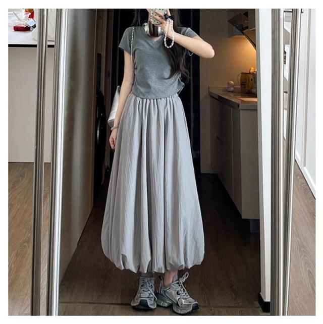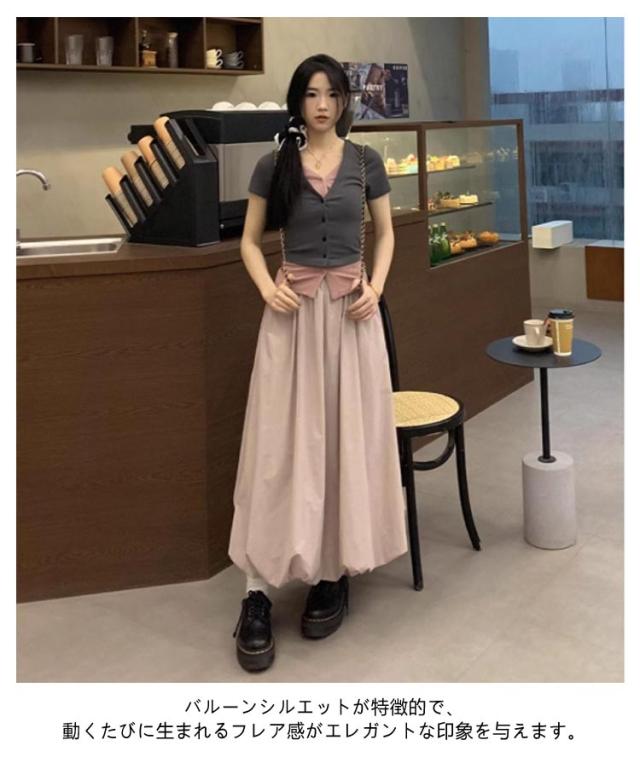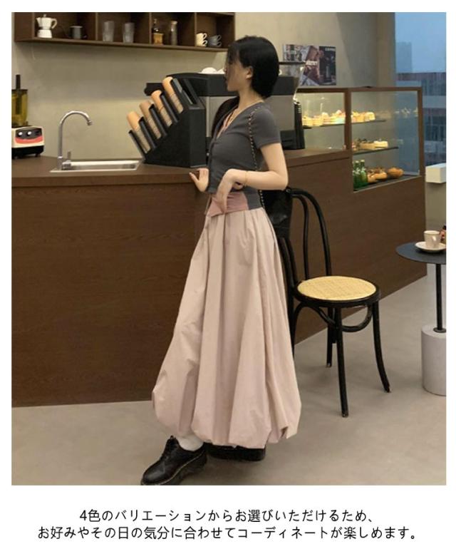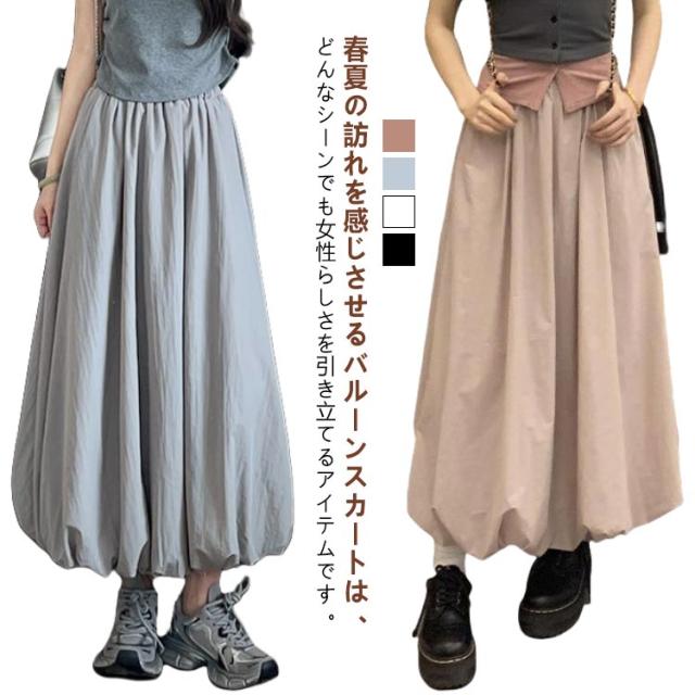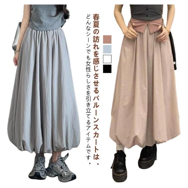 バルーンスカート ボトムス ロング バルーン 夏 春 秋 コクーンスカート バルーンスカート ハイウエスト ロングスカート マキシスカート 体型カバー スカート 大きいサイズ aラインスカート ウエストゴム ロング丈 マキシ丈