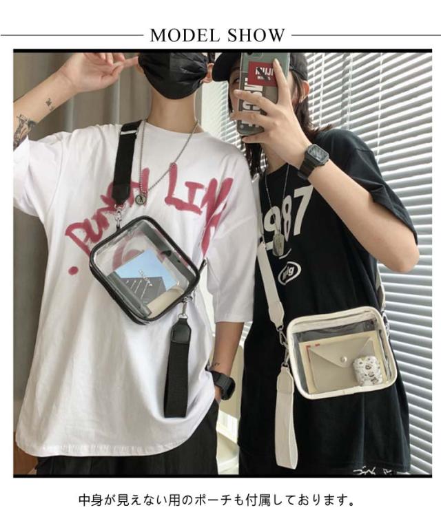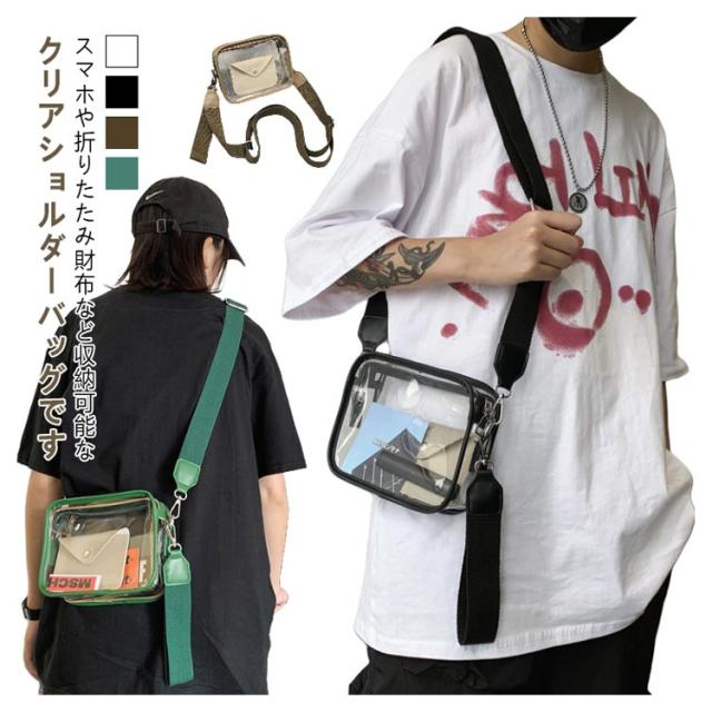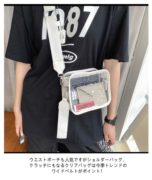 メンズ クリアバッグ サコッシュバッグ 大容量 ショルダーバッグ 送料無料 ボディバッグ カジュアル ポーチ付き pvcバッグ 2way 送料無料 ビニールバッグ おしゃれ 斜めかけバッグ PVC ミニバッグ 軽量 韓国風 シンプル 肩掛け ワンショルダー