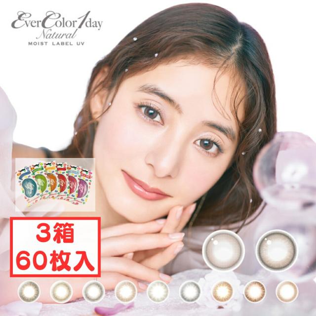エバーカラーワンデーナチュラル モイストレーベルUV 1day 3箱60枚 1日使い捨て カラコン 30日分 新色発売 ローズミューズ ティアーミューズ 新木優子 UVCUT UV対策 UVケア 紫外線カット 送料無料 カラーコンタクト