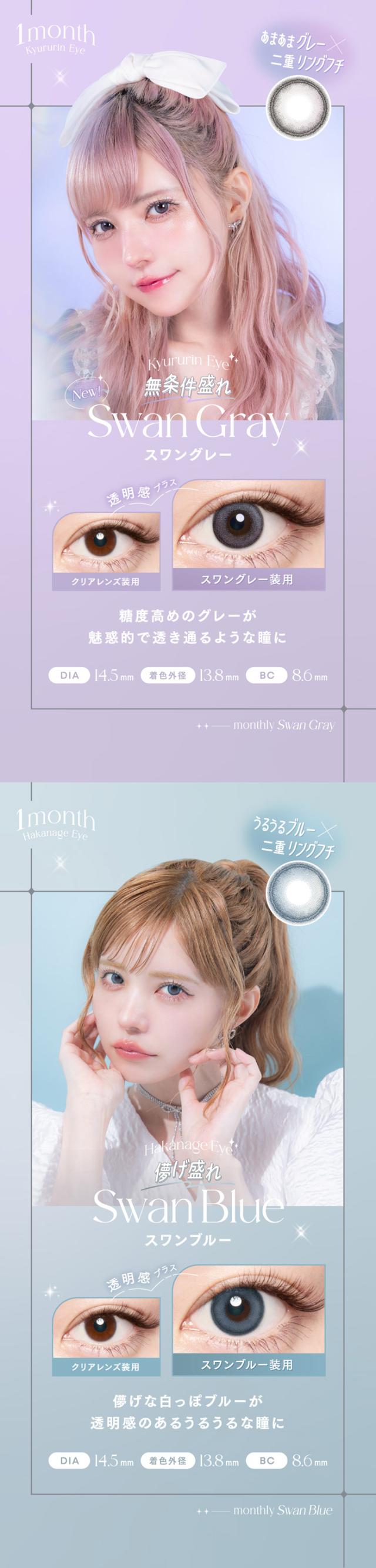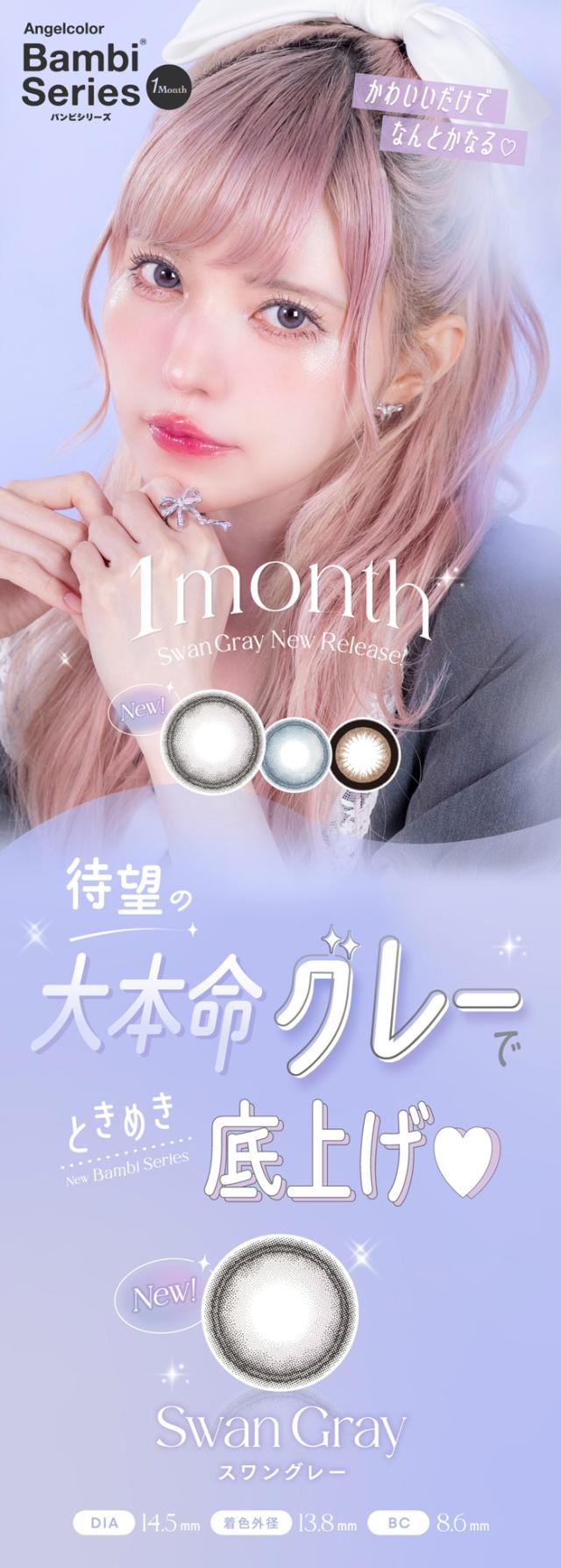 カラコン 1ヶ月 度あり エンジェルカラー バンビワンマンス 益若つばさ DIA14.5mm BC8.6 1箱2枚入り UVカット スワンブルー スワングレー アーモンド ブラウン フチあり 大きめ 可愛い 高度数 ハイパワー フチあり フチなし