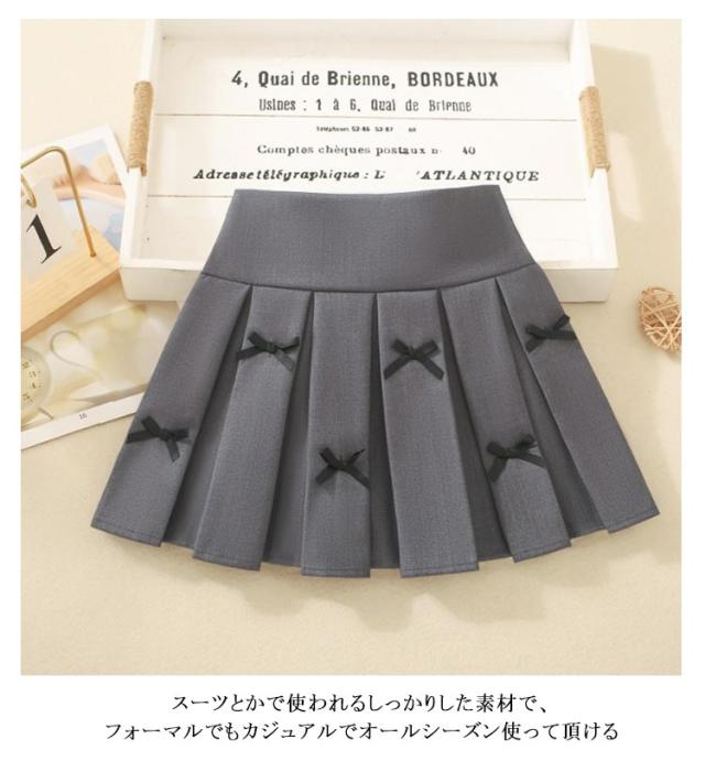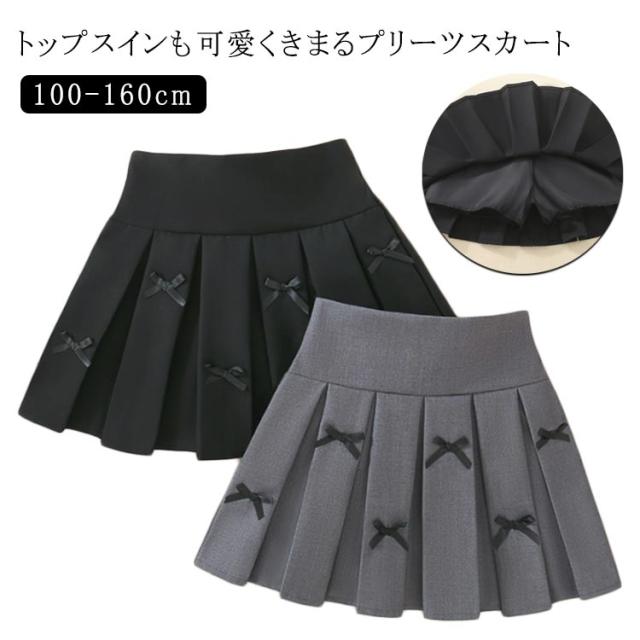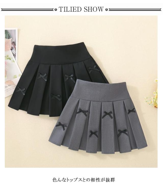 プリーツスカート インナーパンツ付き リボン キッズ スカート スクールスカート かわいい プリーツスカート 春夏秋 ミニスカート 子供服 ジュニア 発表会 通学 普段着 小学生 中学生