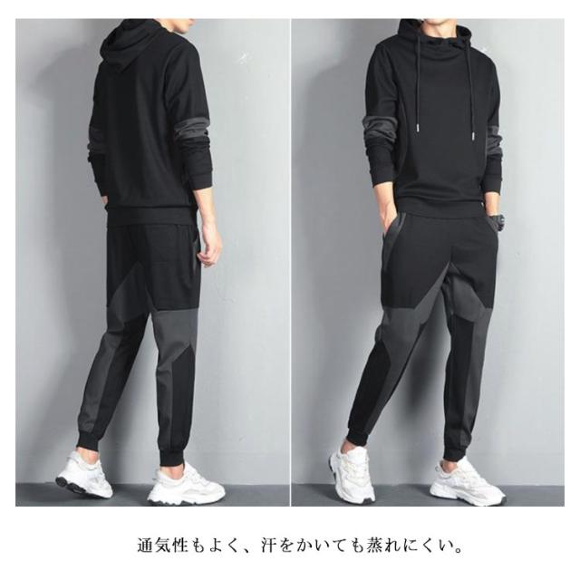 セットアップ 無地 大きいサイズ スエット メンズ セットアップ スポーツウェア 上下セット 長袖 春秋 スウェット パーカー セットアップ ロングパンツ 長ズボン おしゃれ 運動着 春服 秋服 重ね着風 部屋着 黒 ルームウェア 外出 学生