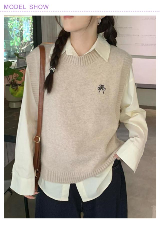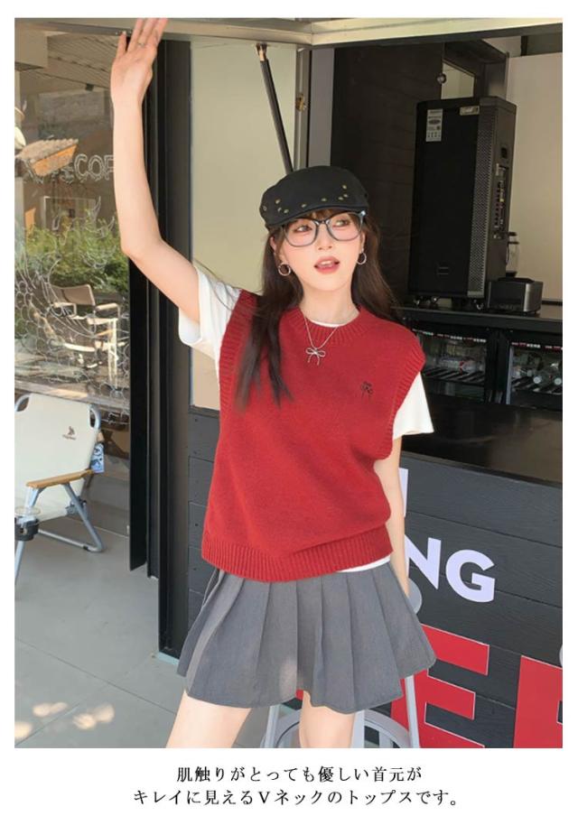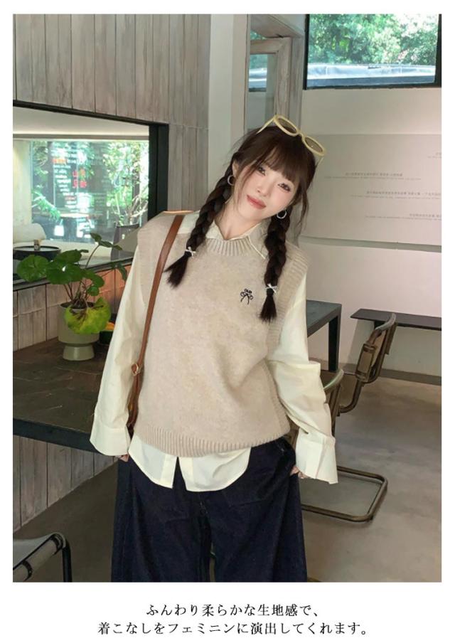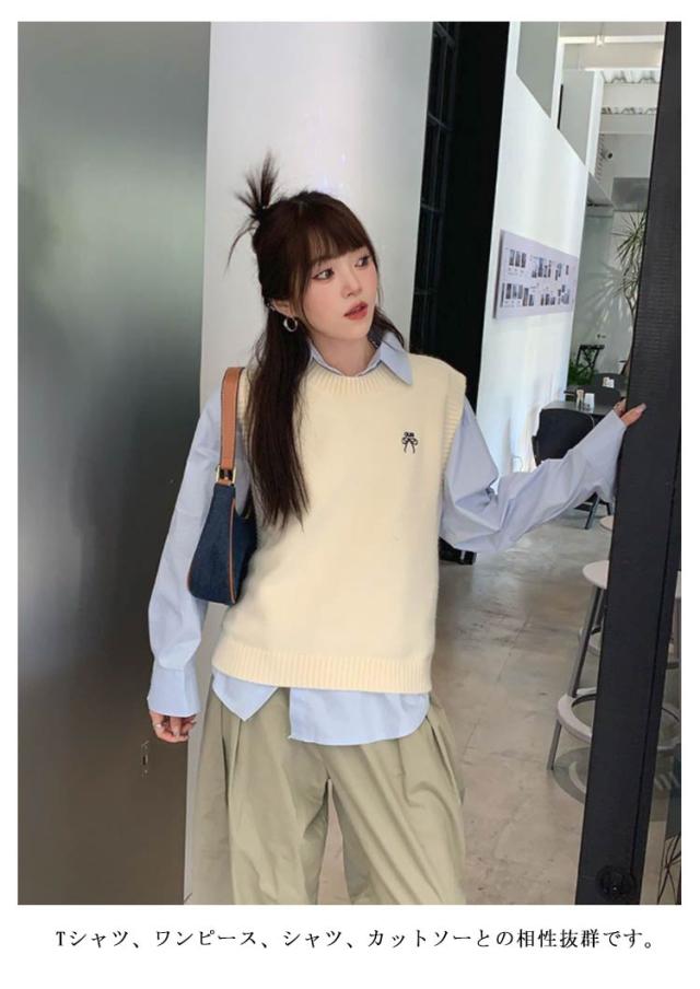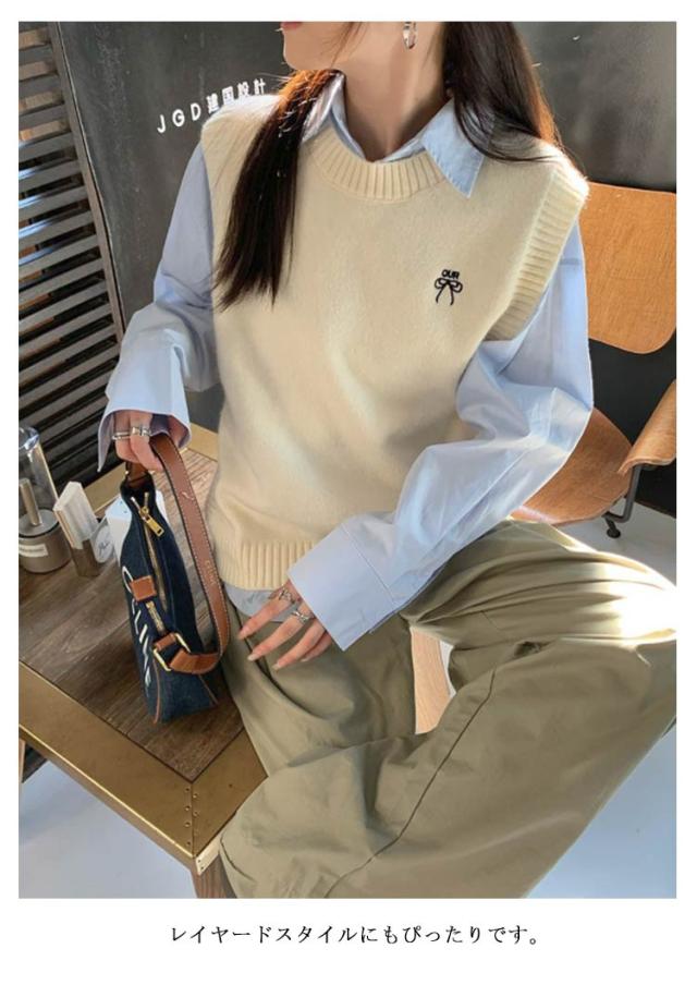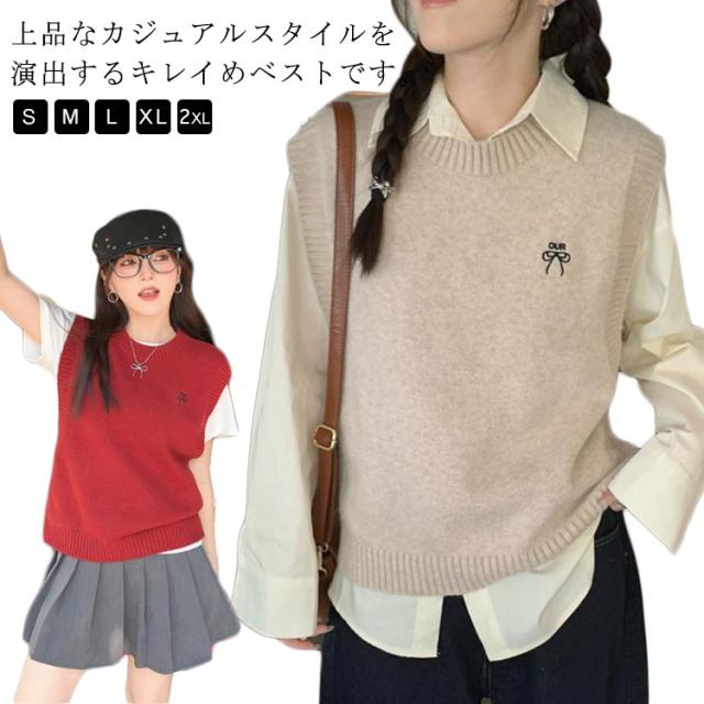 プルオーバー ショート丈 レディース ベスト ベスト 体型カバー 無地 ニット シンプル ニット 長袖 シャツ キレイめ レイヤード ゆったり カジュアル リブ編み 大人 トップス 40代 秋 冬 30代 ノースリーブ S M L XL 2XL