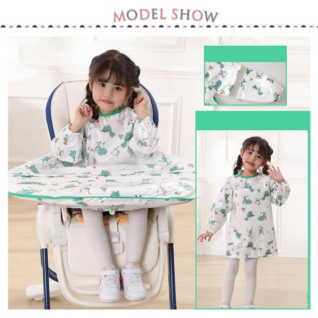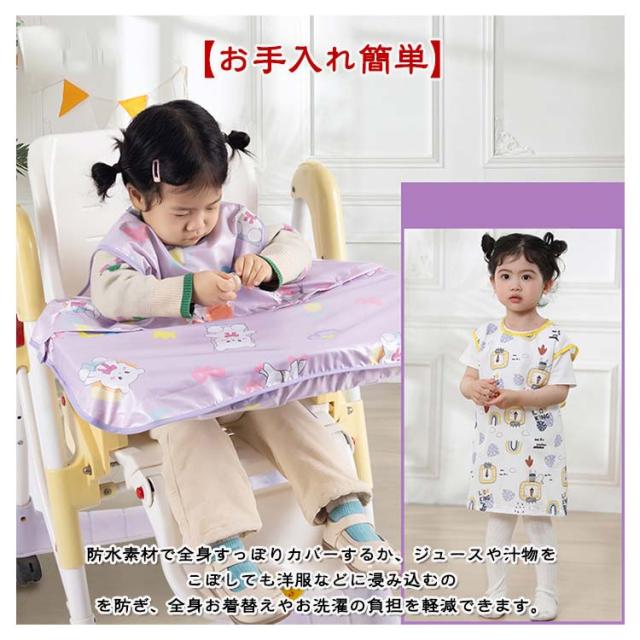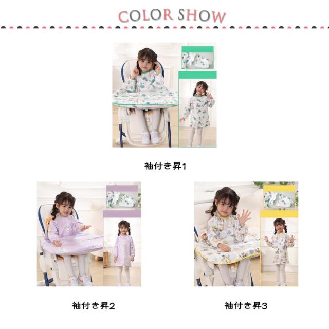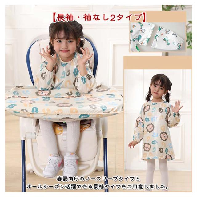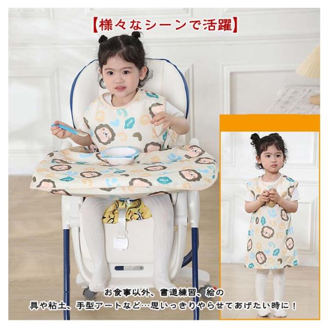 | 多機能お食事エプロン!後片付けのストレスから解放!普通のロングエプロンに変身可能。 【食べこぼしをしっかりキャッチ】チェアとテーブルに固定できるテーブル一体型エプロ体とテーブルの間に隙間がないから、お洋服もチェアも汚れません◎食事後はエプロンごとさっと片づけるだけ。 【吸盤付食器使用可能】テーブルクロス一体型エプロンはスナップボタンデザインで吸盤付き食器も使えます。さらに、テーブルクロス部分は取り外しできるから、普通のロングエプロンとしても使える2WAY仕様。 【長袖・袖なし2タイプ】春夏向けのノースリーブタイプとオールシーズン活躍できる長袖タイプをご用意しました。長袖タイプは半袖にもなる2WAYデザイン、一年中快適にお使いいただけます。 【お手入れ簡単】防水素材で全身すっぽりカバーするか、ジュースや汁物をこぼしても洋服などに浸み込むのを防ぎ、全身お着替えやお洗濯の負担を軽減できます。洗濯機で丸洗いできるから、お手入れとても簡単。 【様々なシーンで活躍】お食事以外、書道練習、絵の具や粘土、手型アートなど…思いっきりやらせてあげたい時に! 【ハイチェアもローチェアも適応】市販のほとんどのベビーチェアに使えます。 | |