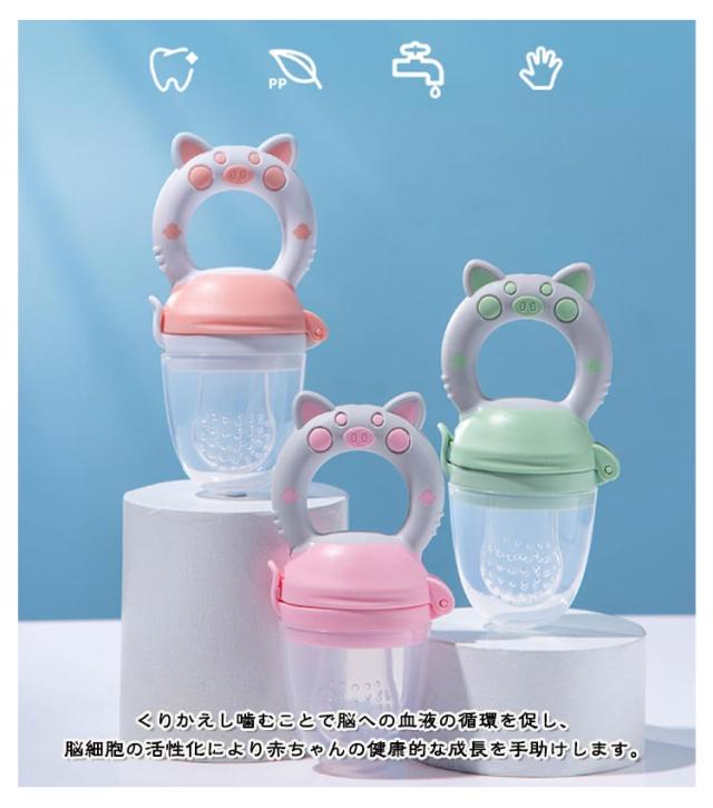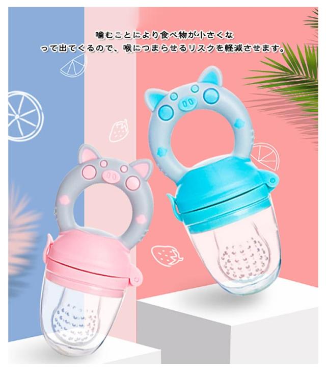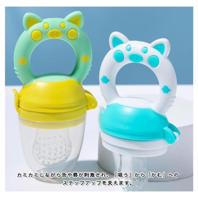 | 3サイズ!赤ちゃんが「自分で食べる」力を育てる離乳食フィーダー! 噛むことにより食べ物が小さくなって出てくるので、喉につまらせるリスクを軽減させます。 カミカミしながら舌や唇が刺激され、「吸う」から「かむ」への ステップアップを支えます。 くりかえし噛むことで脳への血液の循環を促し、脳細胞の活性化により赤ちゃんの健康的な成長を手助けします。 使い方は簡単!果物やベビーフードを入れるだけ! 離乳食を食べないイライラ問題を解決できる!自分で食べることで自信がつき、自立を促します。 | |