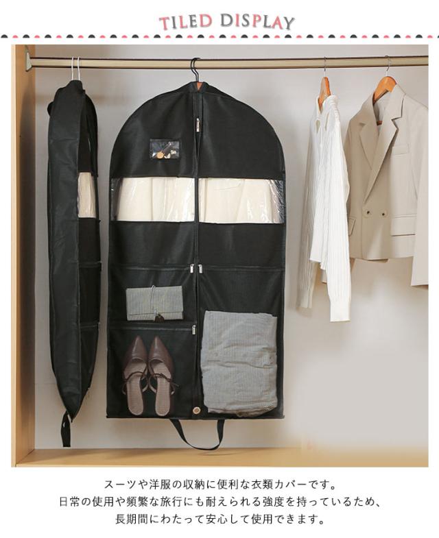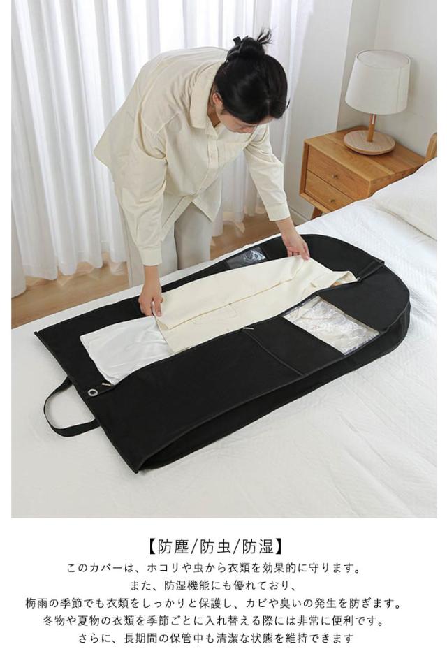 | 【仕切りデザイン、シューズ、アクセサリー、小物入れる!】スーツや洋服の収納に便利な衣類カバーです。日常の使用や頻繁な旅行にも耐えられる強度を持っているため、長期間にわたって安心して使用できます。 大切なスーツやモーニングコート、洋服を入れておけるロングタイプです。 折りたたんでファスナーでとめればコンパクトに。 持ち運び時に便利な取っ手になっています。 【手提げ/透明窓付き】:このカバーは、衣類だけでなく、シューズ、さらにはアクセサリーまで収納できます。多機能なデザインにより、一つのカバーでさまざまな用途に対応できるため、旅行の際の荷物を減らすことができます。 【防塵/防虫/防湿】:このカバーは、ホコリや虫から衣類を効果的に守ります。また、防湿機能にも優れており、梅雨の季節でも衣類をしっかりと保護し、カビや臭いの発生を防ぎます。冬物や夏物の衣類を季節ごとに入れ替える際には非常に便利です。さらに、長期間の保管中も清潔な状態を維持できます。 | |