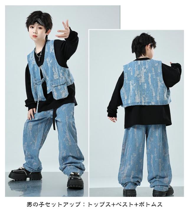 | 【キッズ ダンス衣装】 【110〜180cm】 女の子セットアップ:トップス+ベスト+ボトムス 男の子セットアップ:トップス+ベスト+ボトムス | |