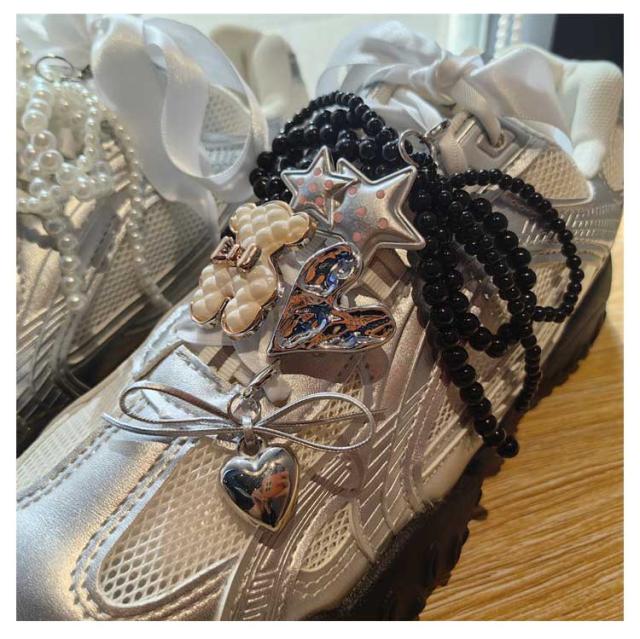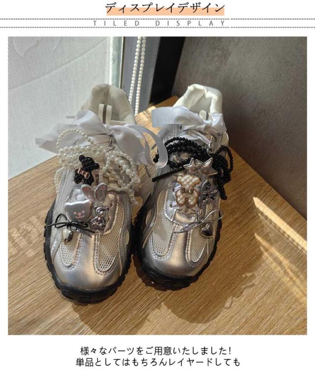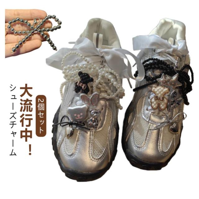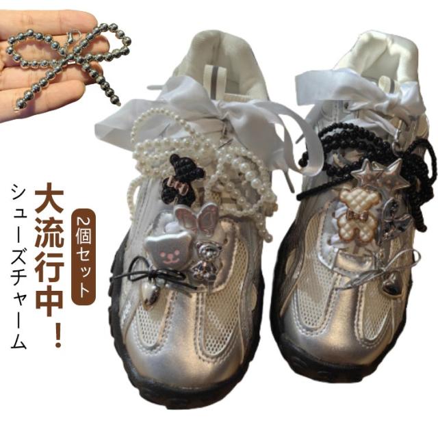 2個セット 花 シューピアス スニーカーアクセサリー スニーカー シューズアクセサリー 刺? パール リボン 蝶 可愛い スニーカーデコ 女性 キーリング 靴 靴ひも シューパーツ レディース シューチャーム リボン 2個セット バレエコア