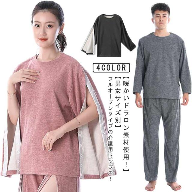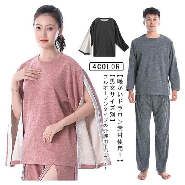 冬用 ドラロン 母の日 パジャマ 大きサイズ ドラロン 介護パジャマ トップス 紳士 女性 フルオープン 入院服 通院用 術後ウエア 骨折 寝たきり 着脱簡単 敬老の日 男性用 女性用 裏起毛 父の日 裏フリース M L XL 2XL